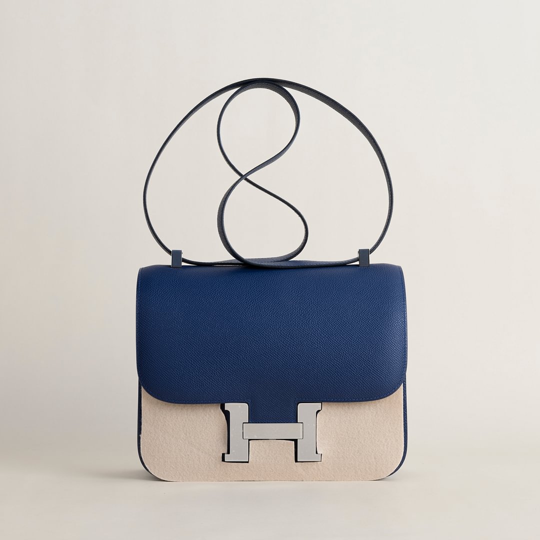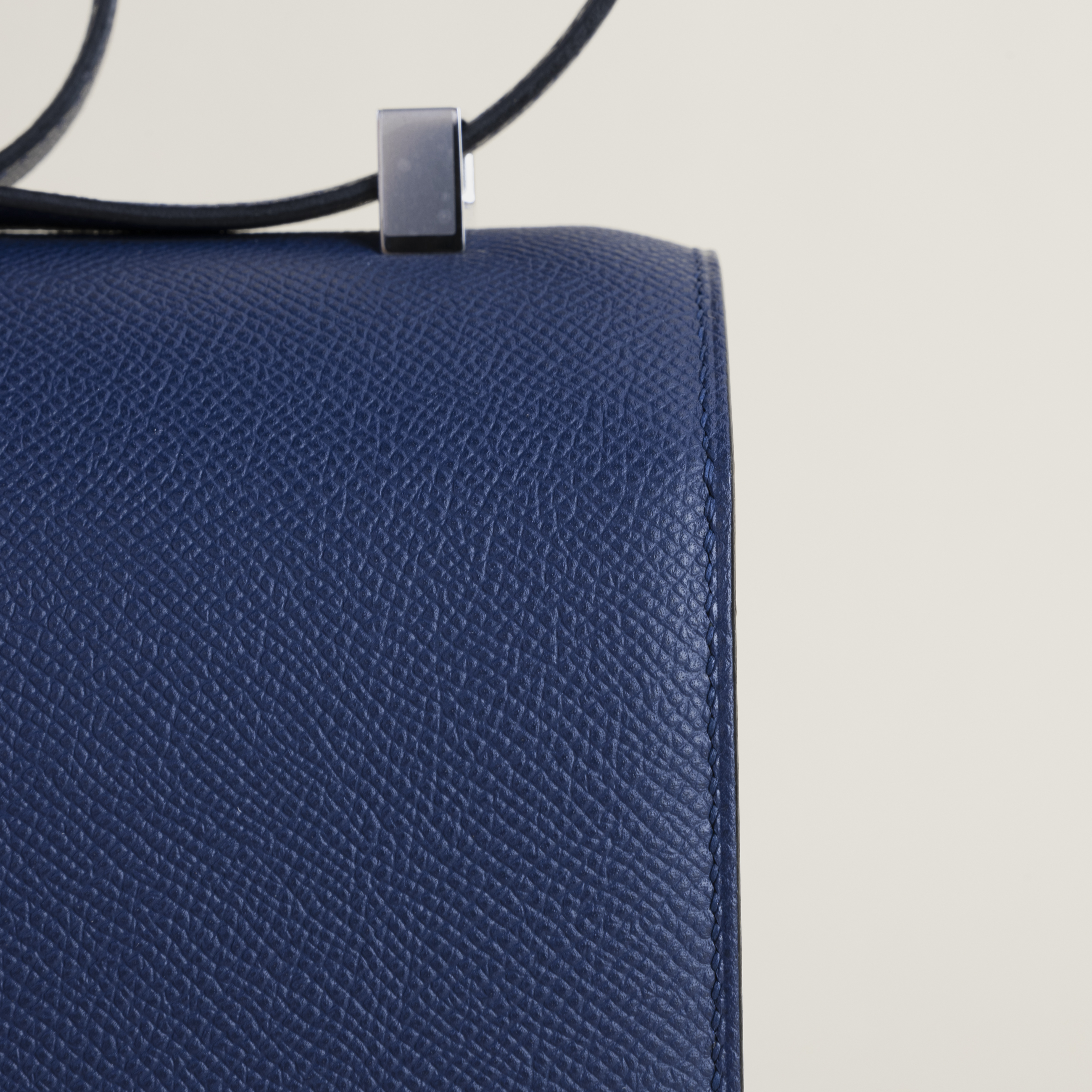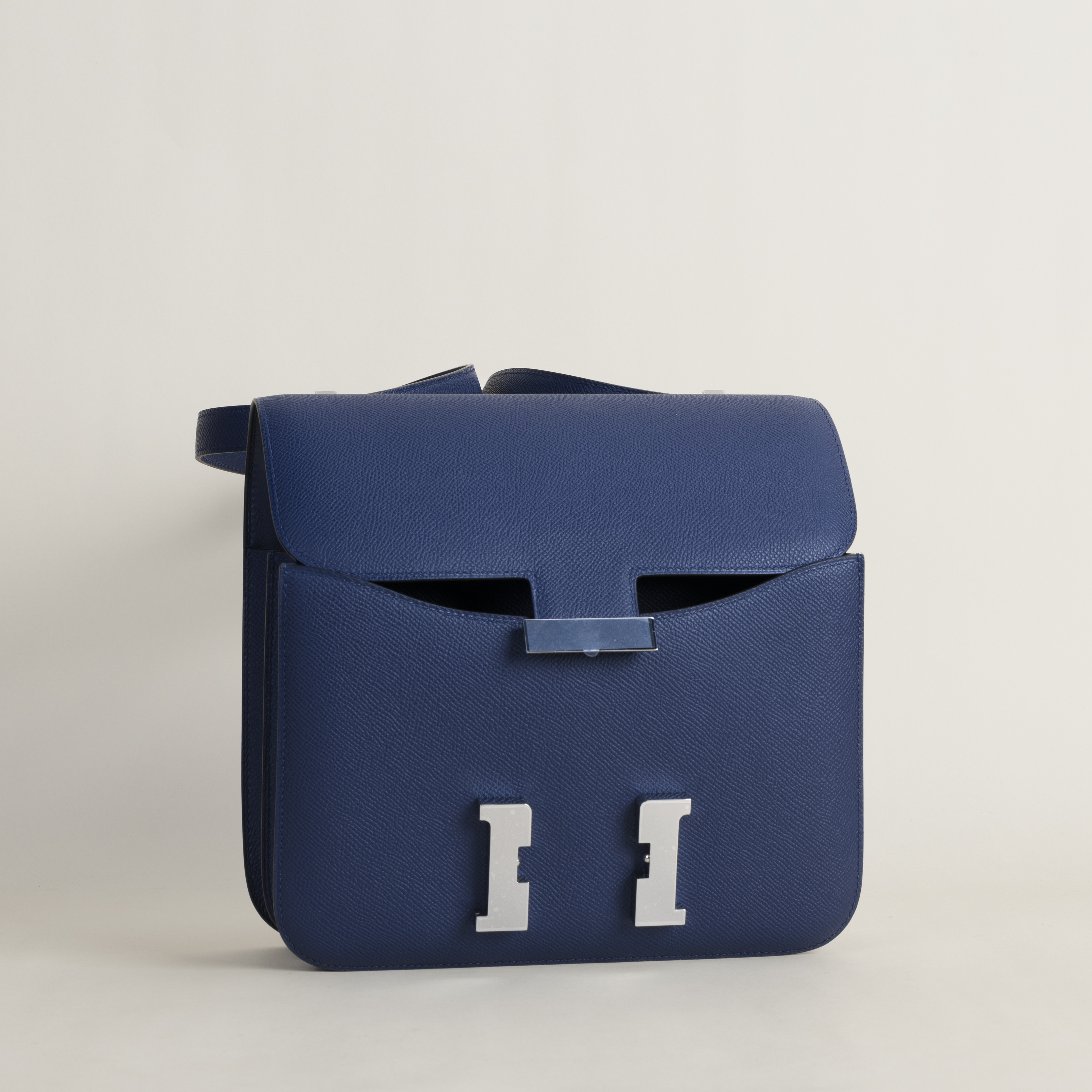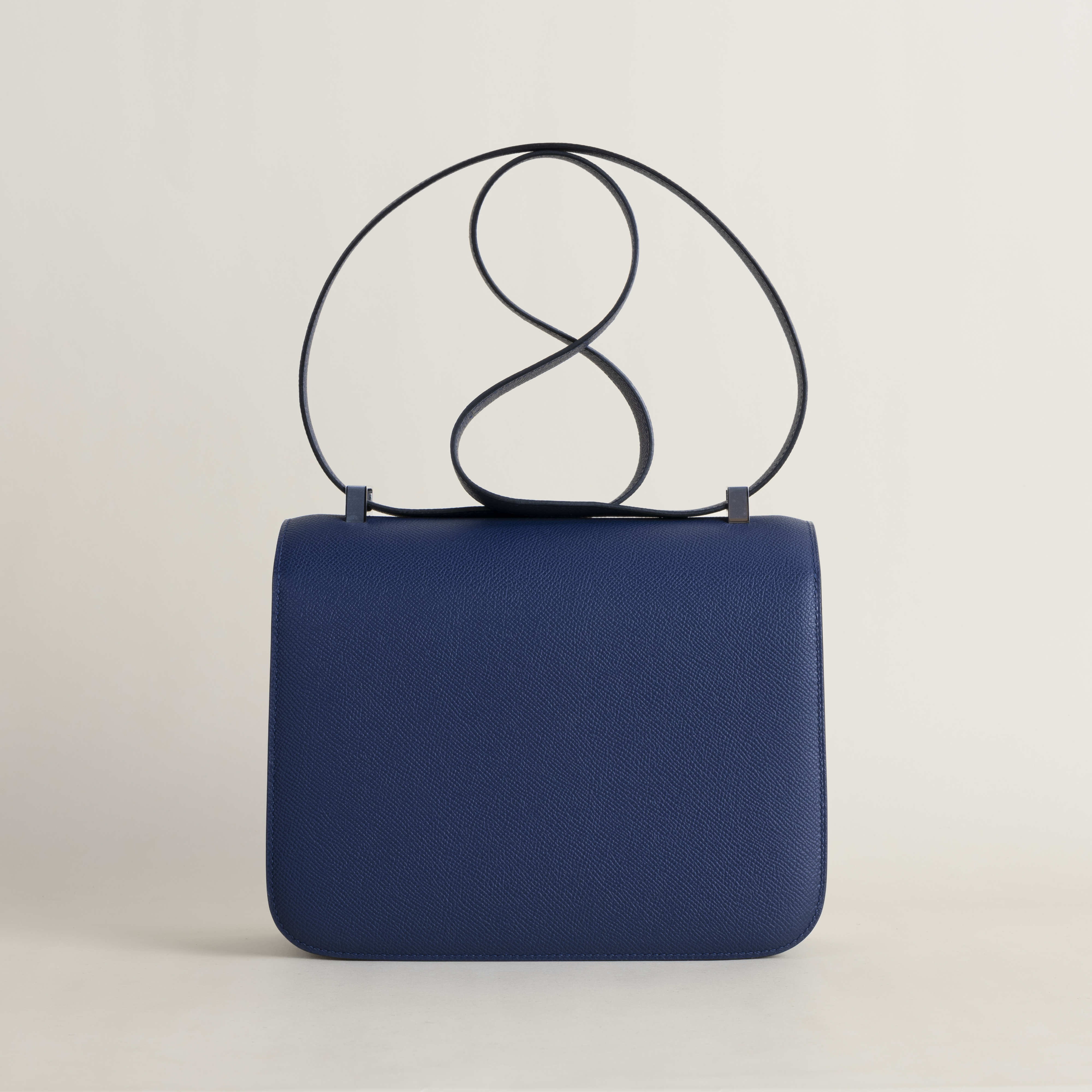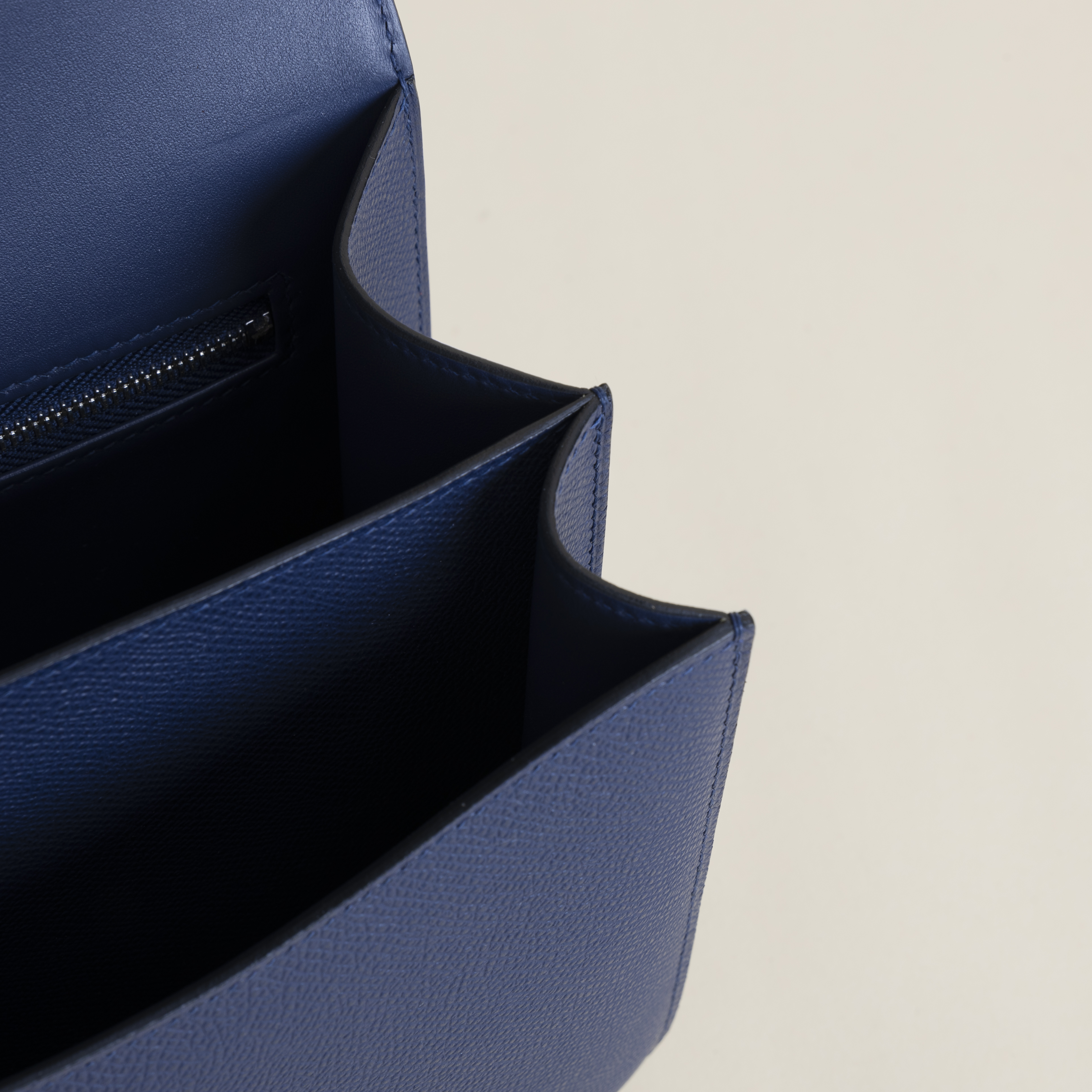 Model :Constance 24CM Color :73 Bleu sapphire Material :Epsom leatherHardware :silver Measurements :(w)24x(H)17x(D)5cmAccompanied:Box, Cotton bag, Mirror