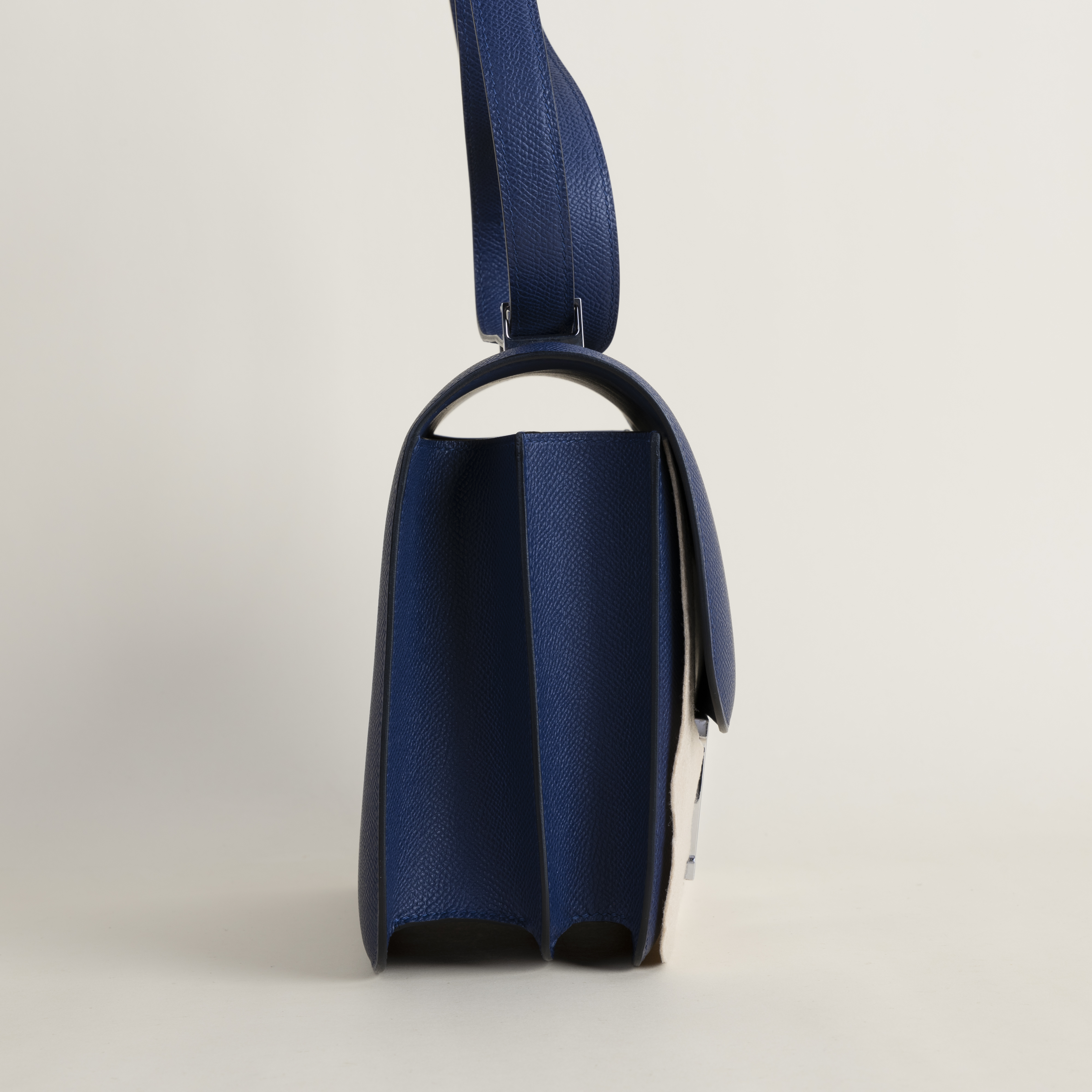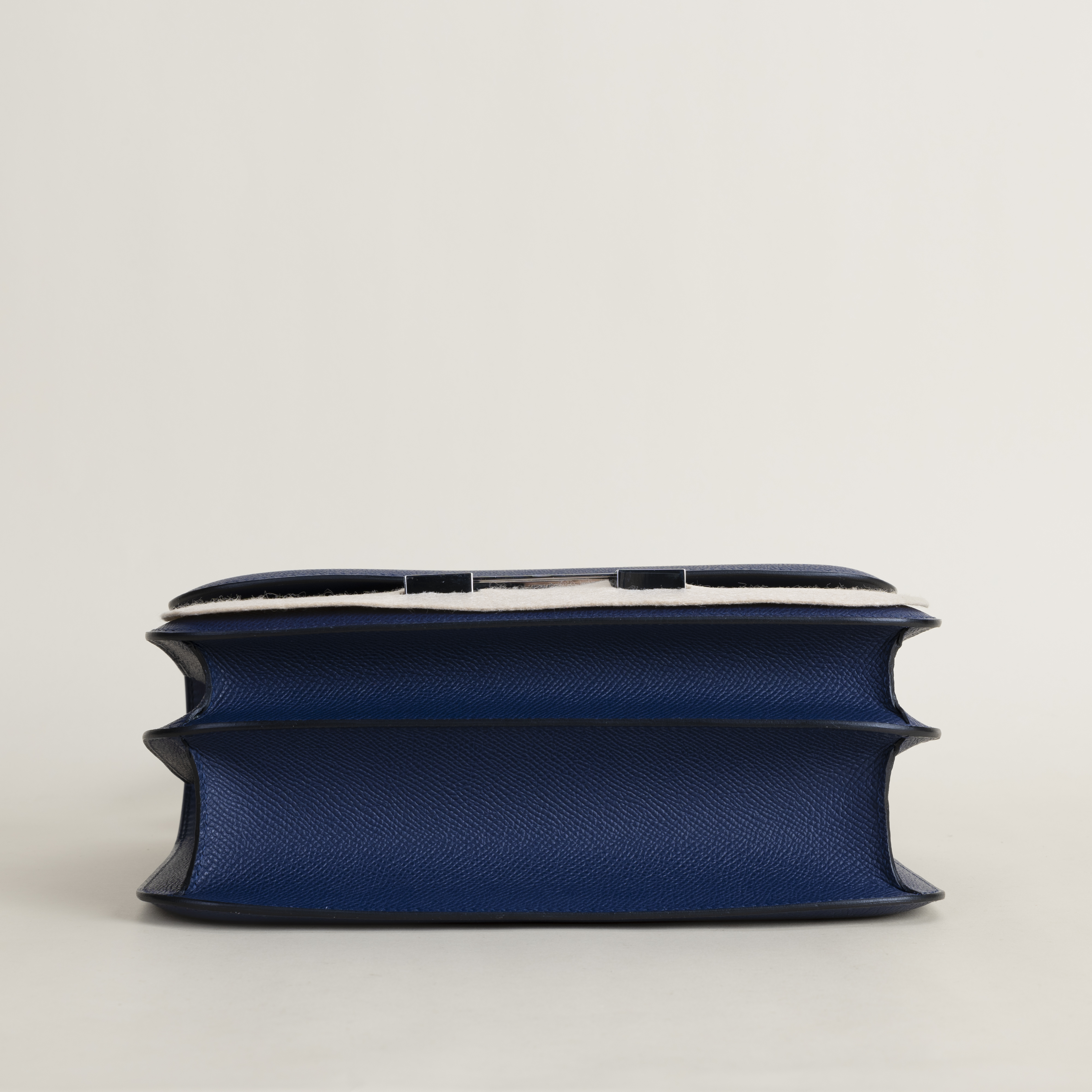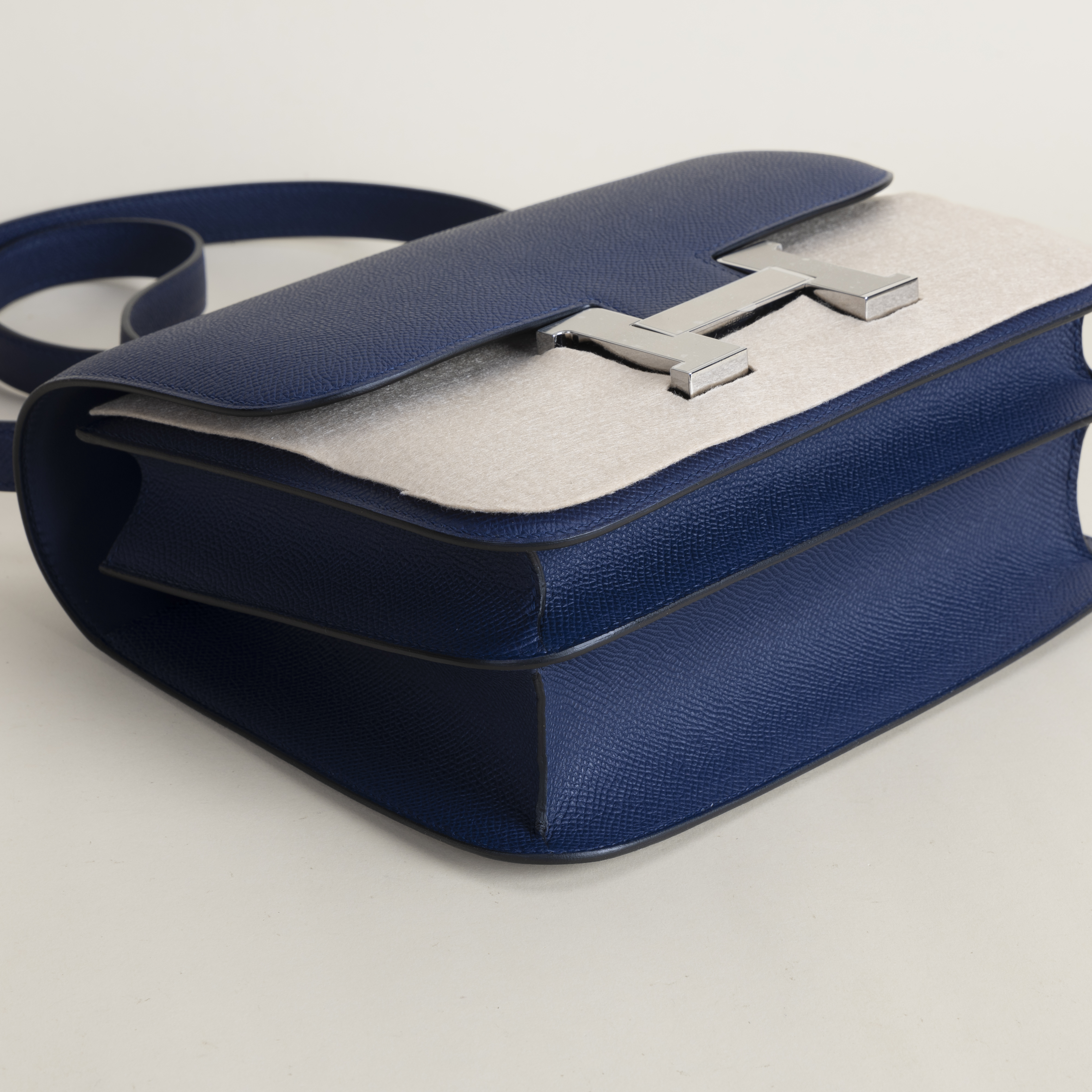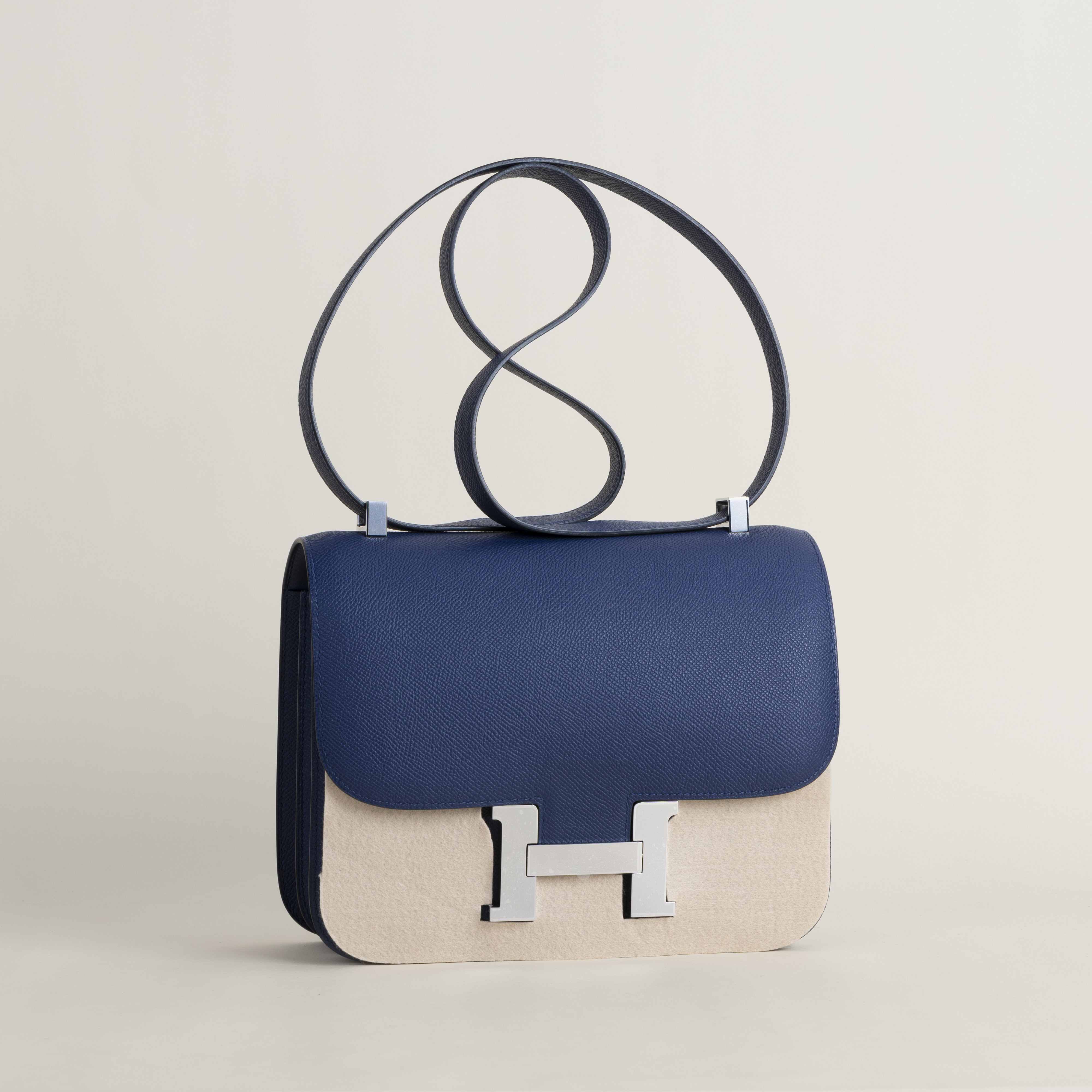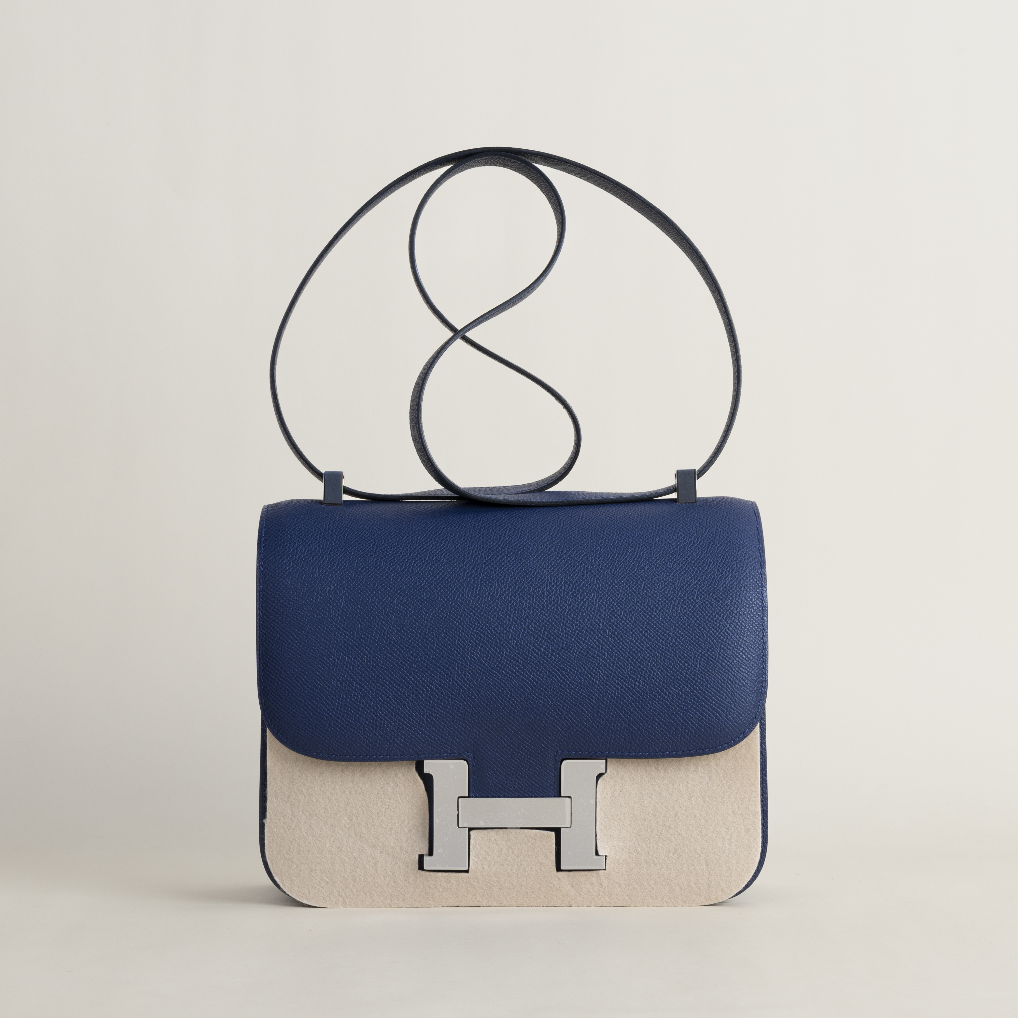 Model :Constance 24CM Color :73 Bleu sapphire Material :Epsom leatherHardware :silver Measurements :(w)24x(H)17x(D)5cmAccompanied:Box, Cotton bag, Mirror