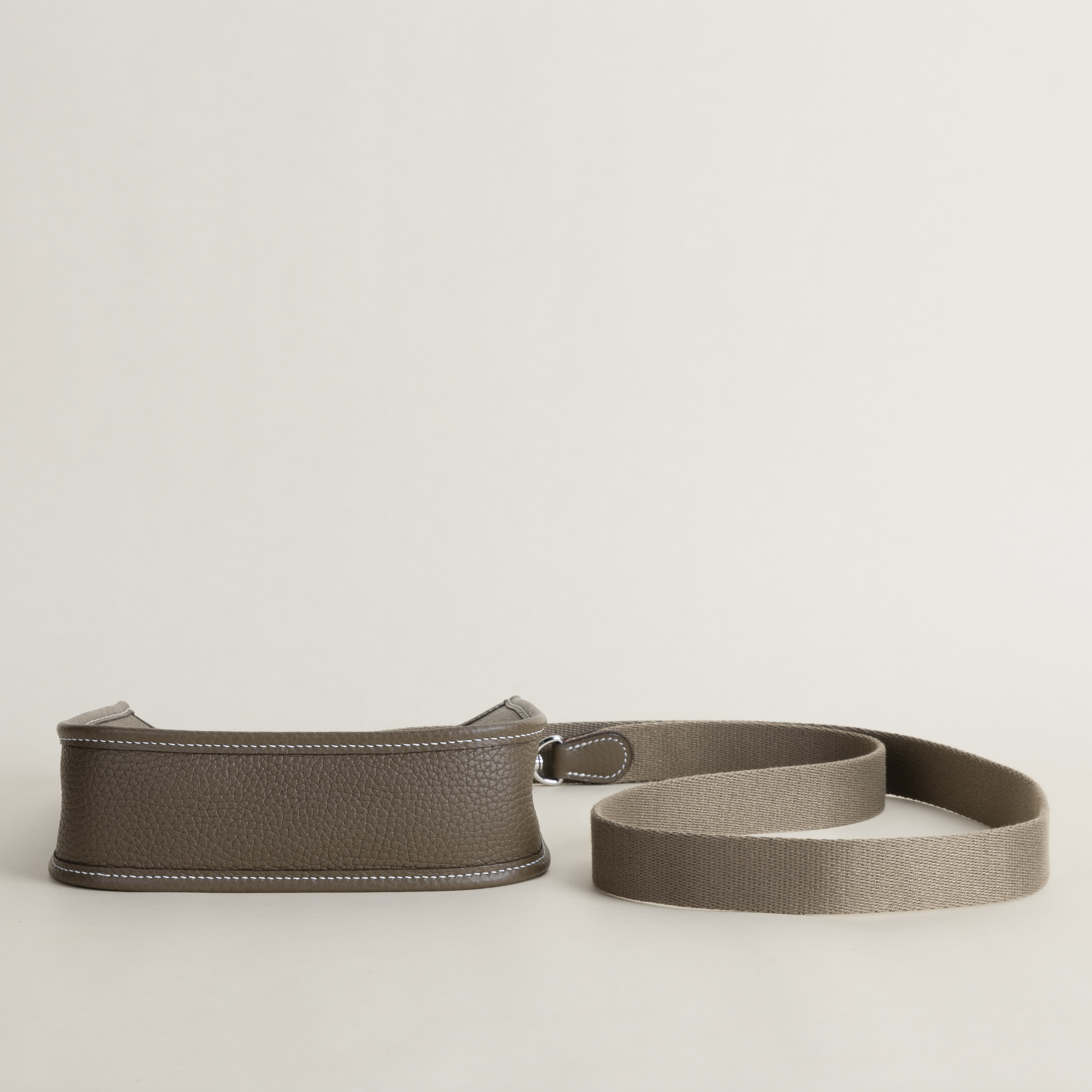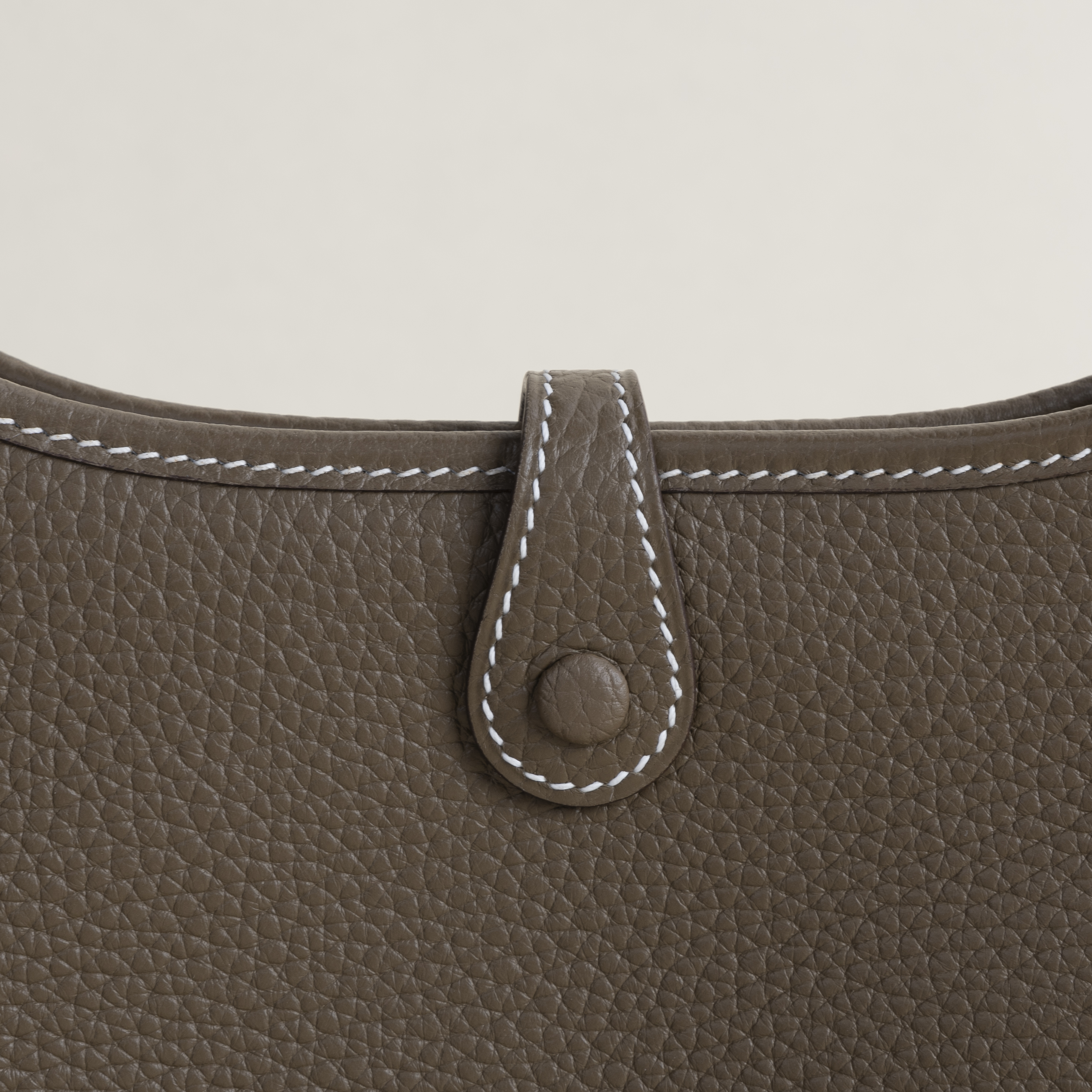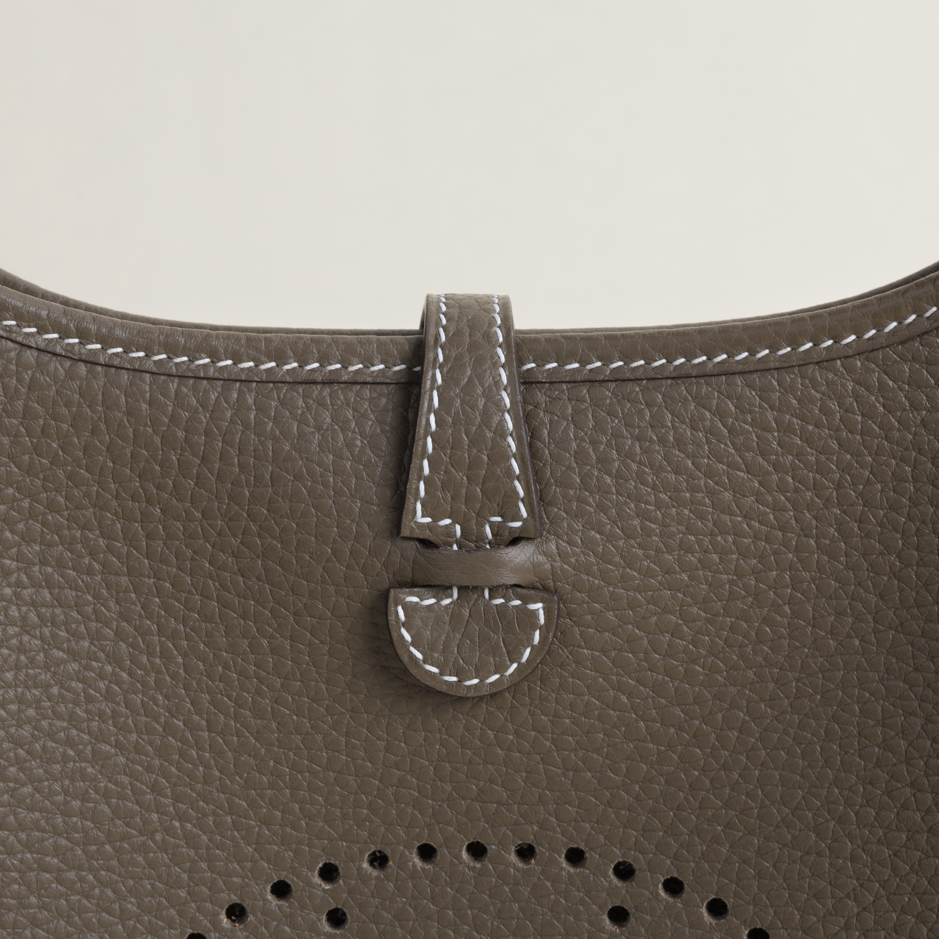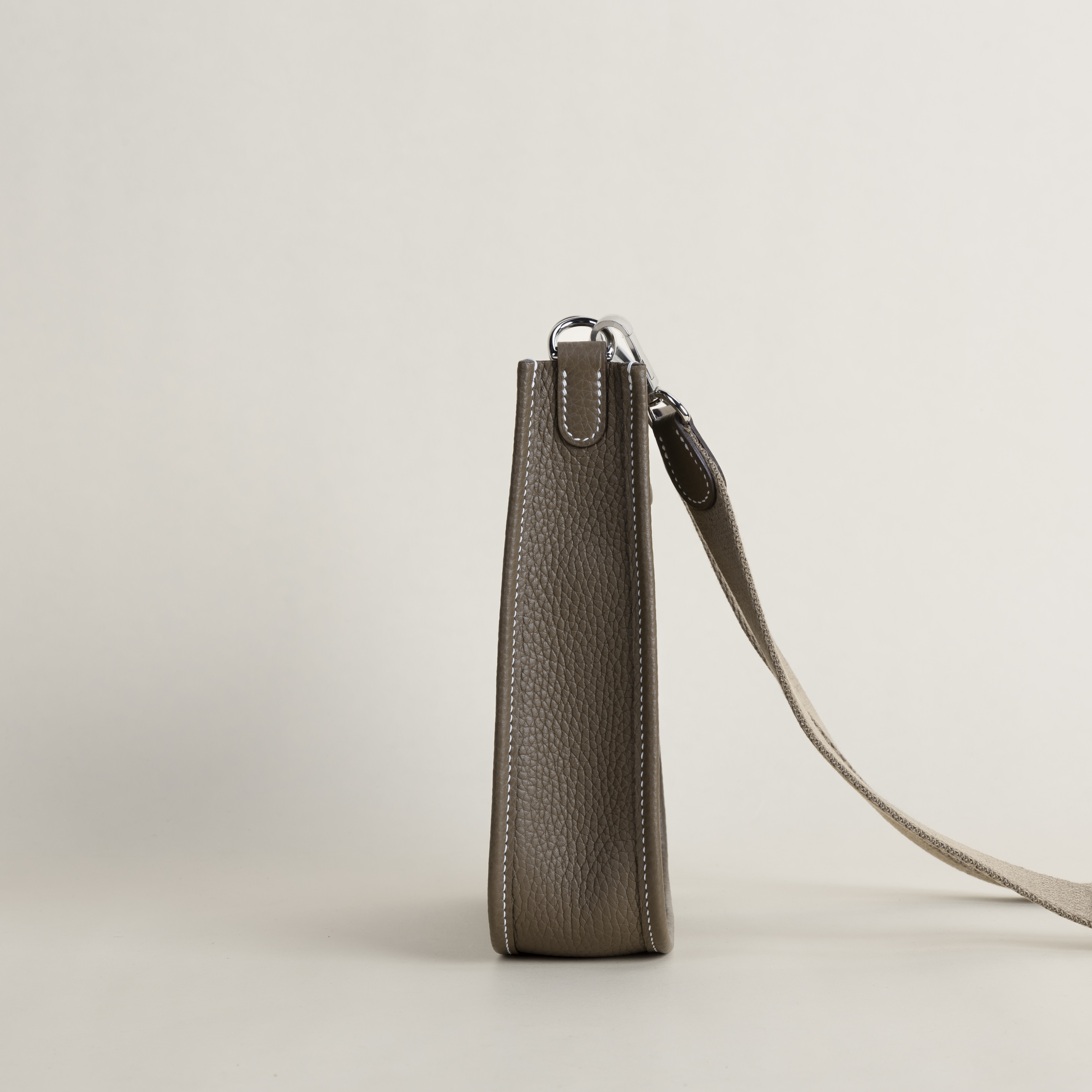 Model :Evelyne miniColor :18 etoupeMaterial :Clemence leather Hardware :SilverMeasurements :(w)18x(H)16x(D)5.5cm Accompanied:shoulderstrap,Padlock,Key,Raincover,Box,Cotton bag
