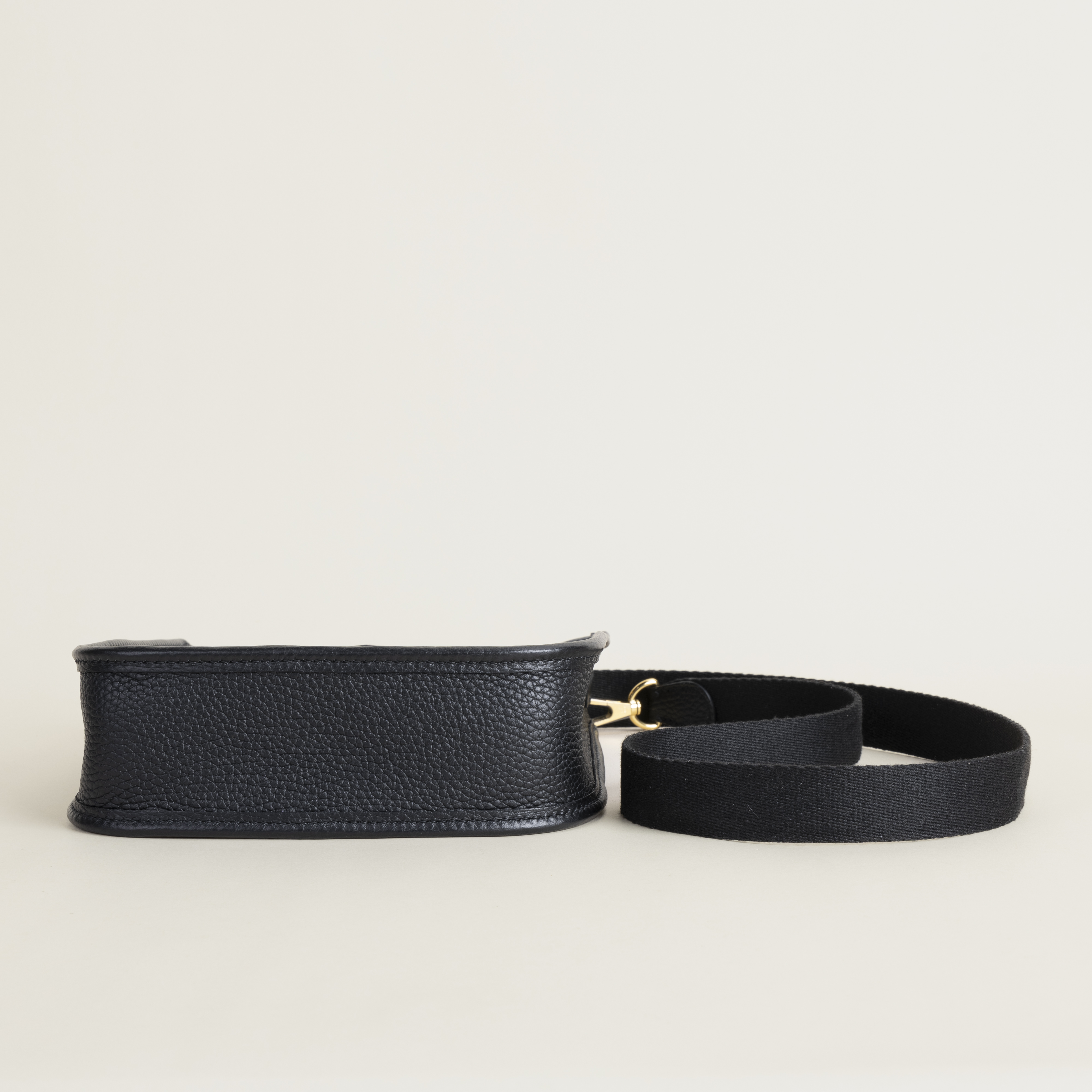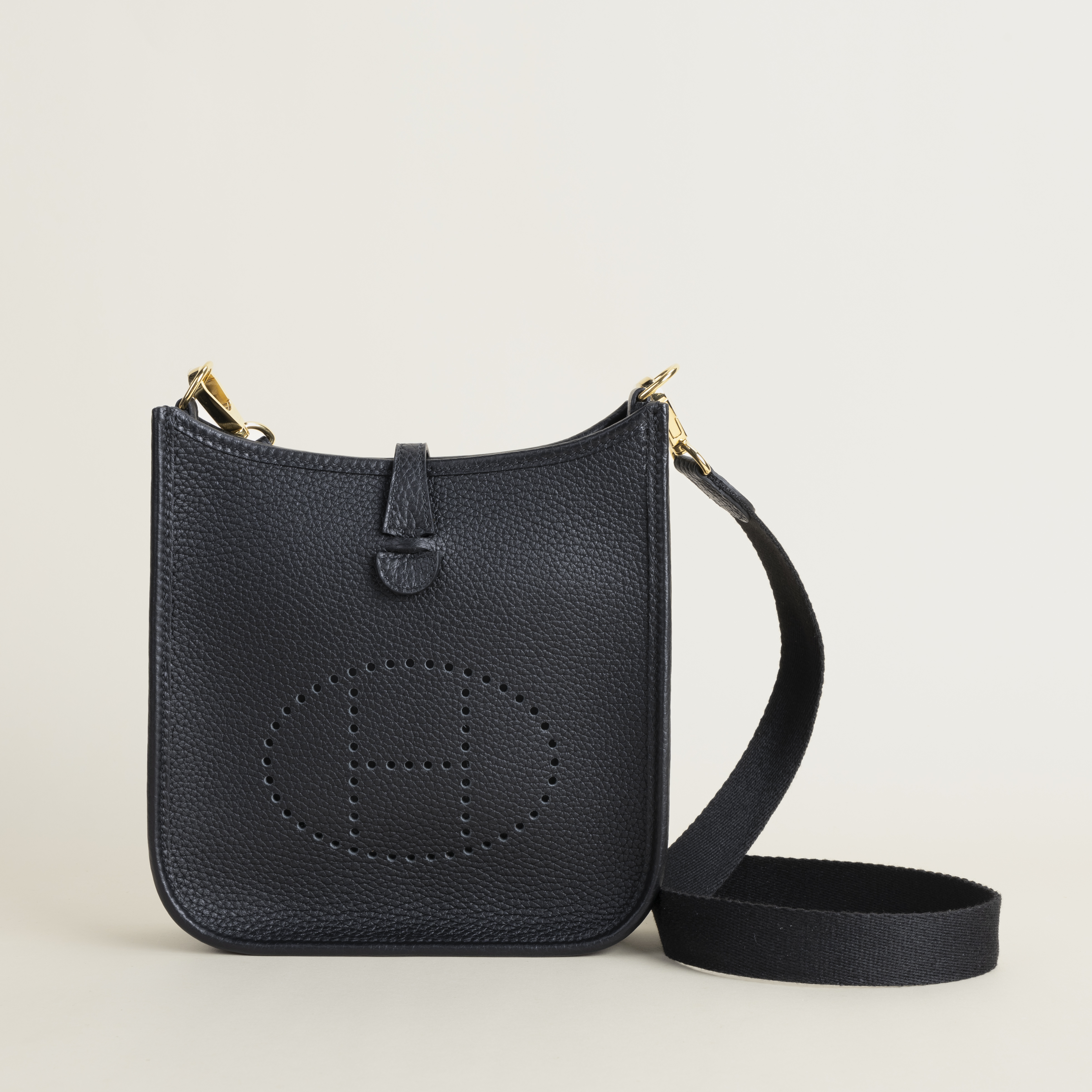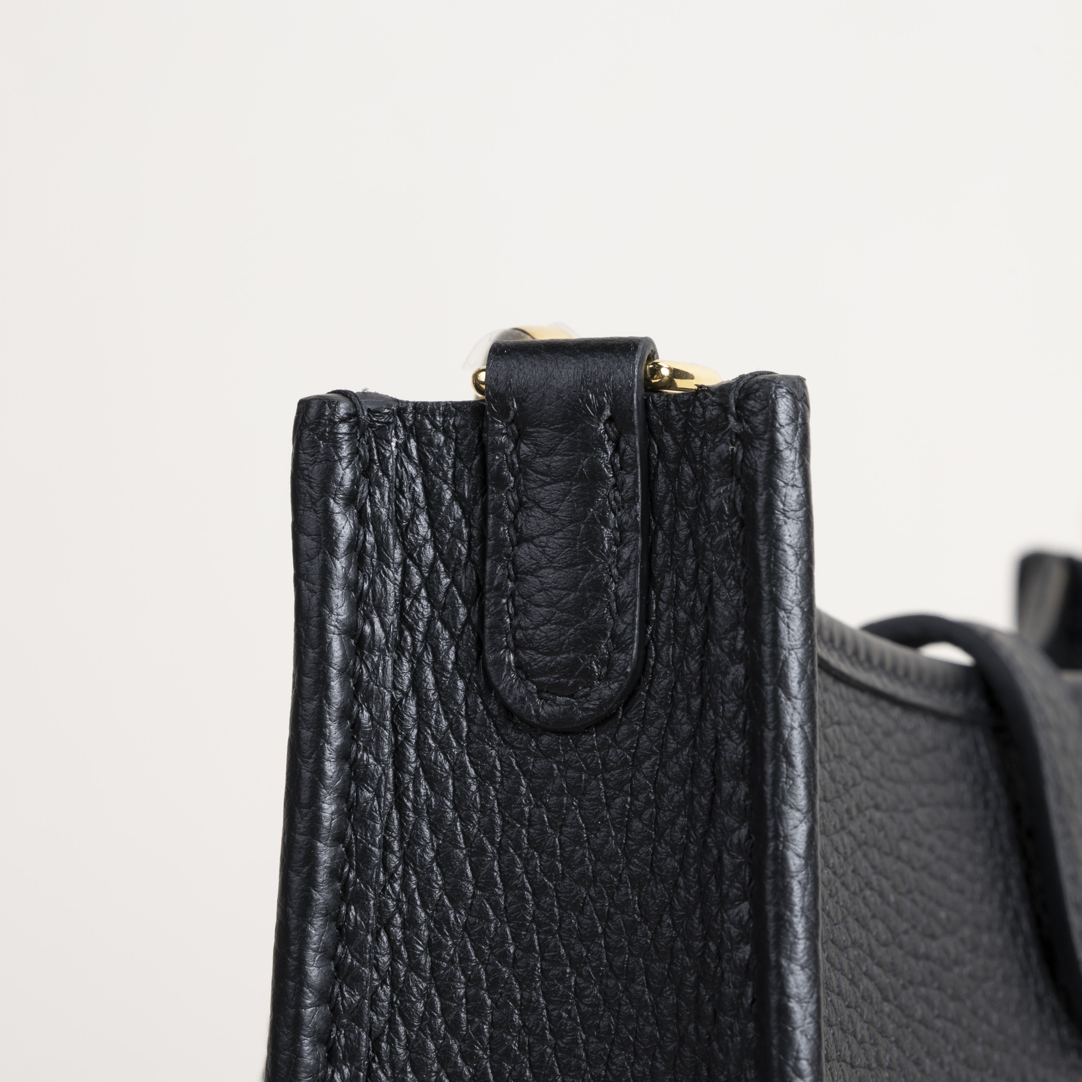 Model :Evelyne miniColor :89 NoirMaterial :Clemence leather Hardware :GoldMeasurements :(w)18x(H)16x(D)5.5cm Accompanied:shoulderstrap,Padlock,Key,Raincover,Box,Cotton bag