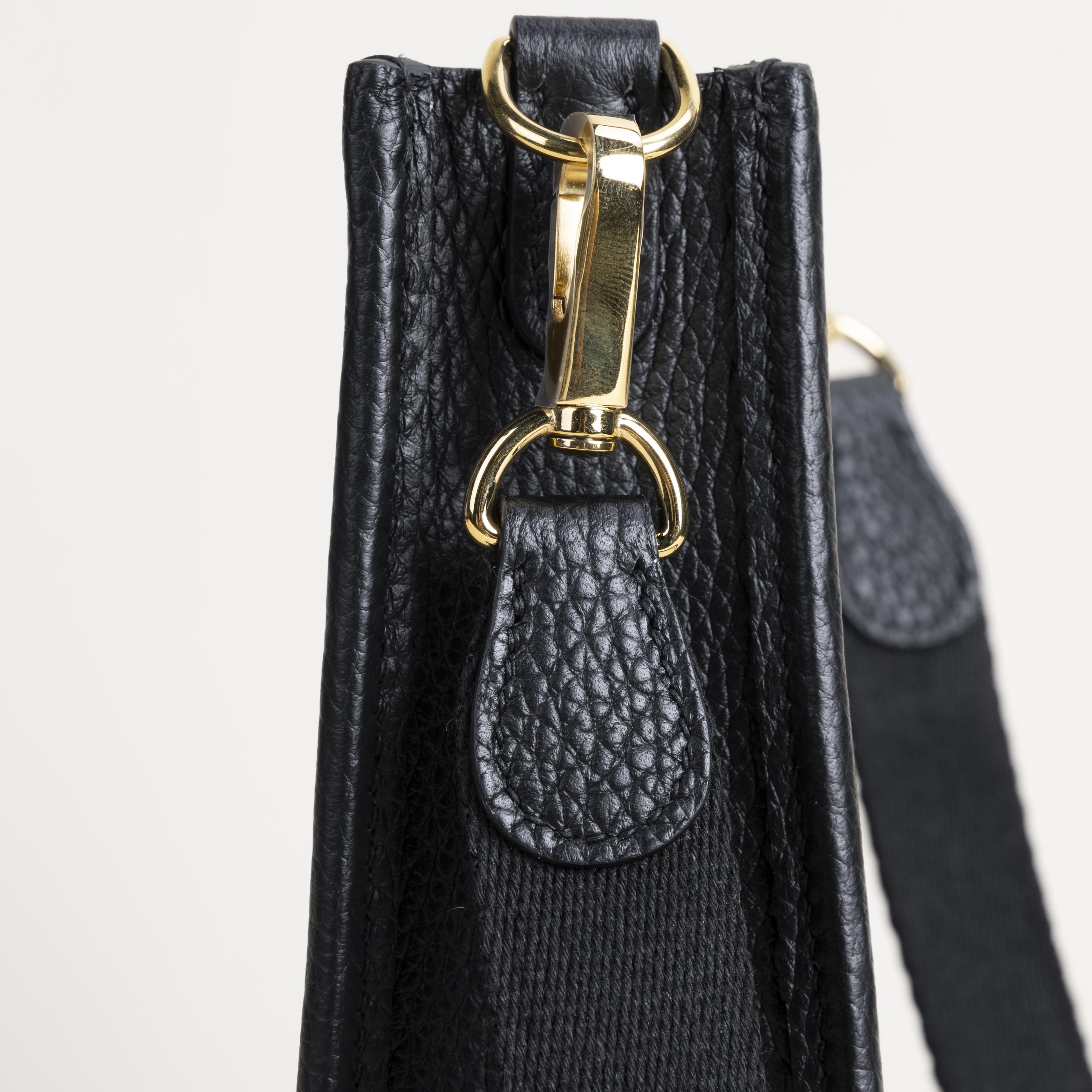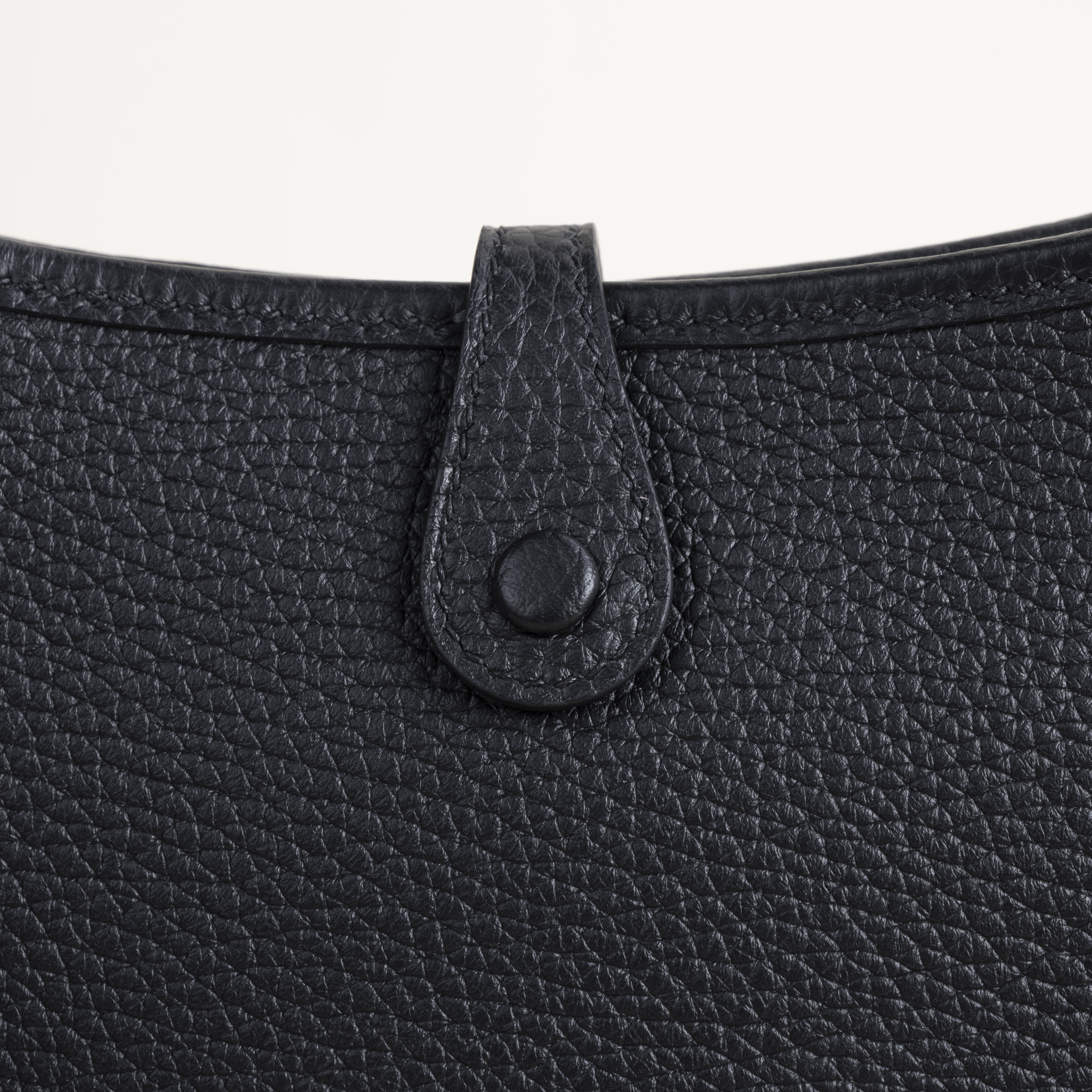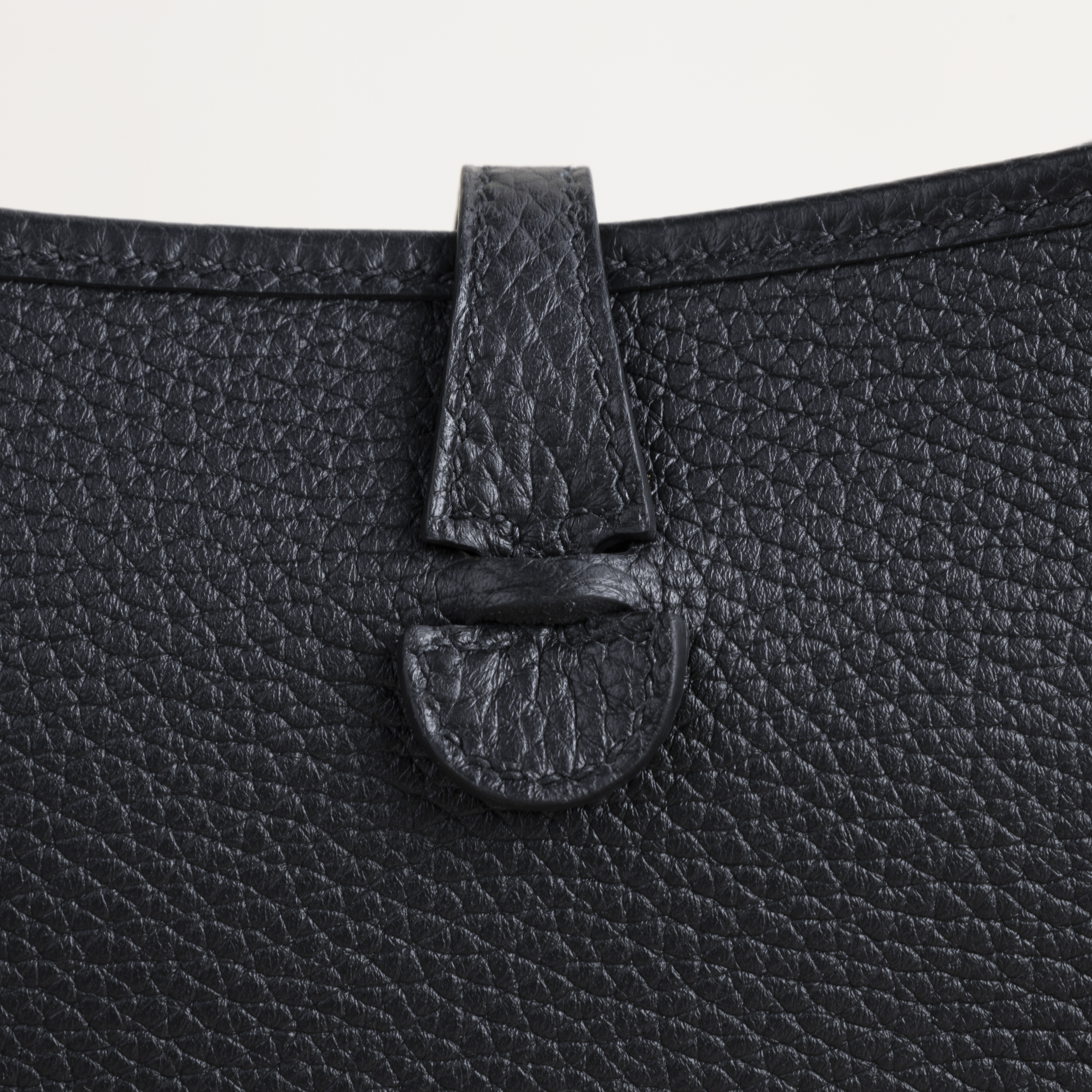 Model :Evelyne miniColor :89 NoirMaterial :Clemence leather Hardware :GoldMeasurements :(w)18x(H)16x(D)5.5cm Accompanied:shoulderstrap,Padlock,Key,Raincover,Box,Cotton bag