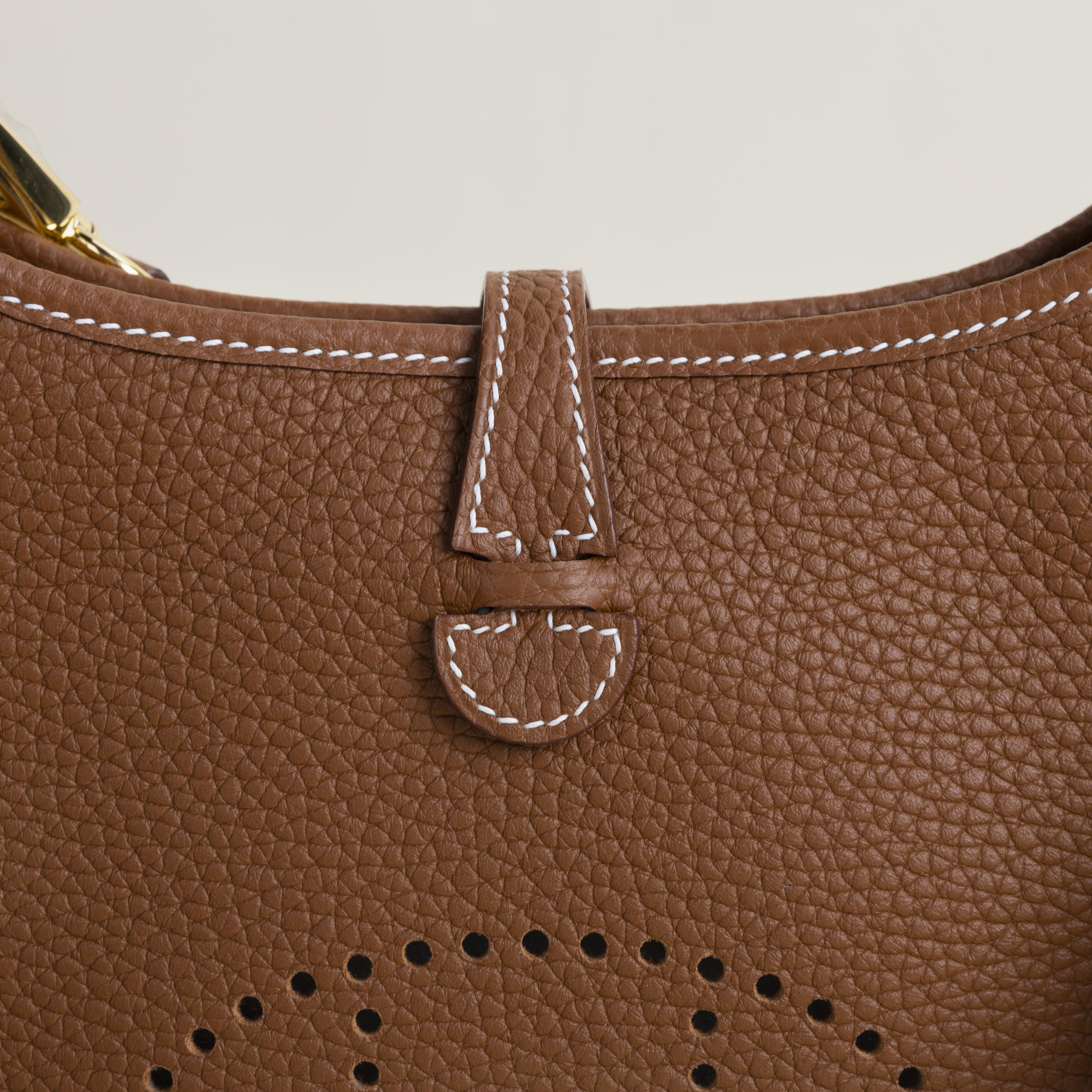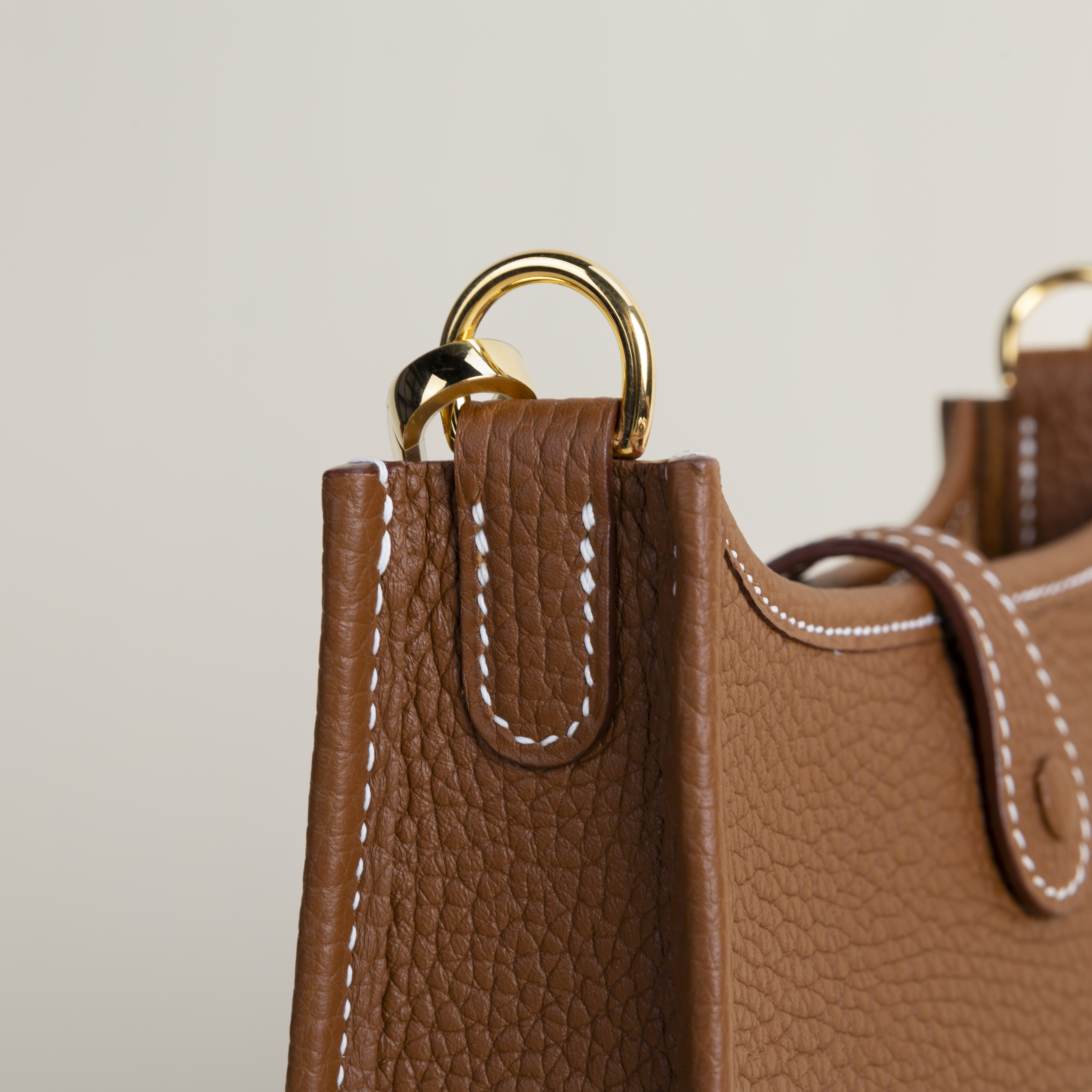 Model :Evelyne miniColor :CC37 GoldMaterial :Clemence leather Hardware :GoldMeasurements :(w)18x(H)16x(D)5.5cm Accompanied:shoulderstrap,Padlock,Key,Raincover,Box,Cotton bag