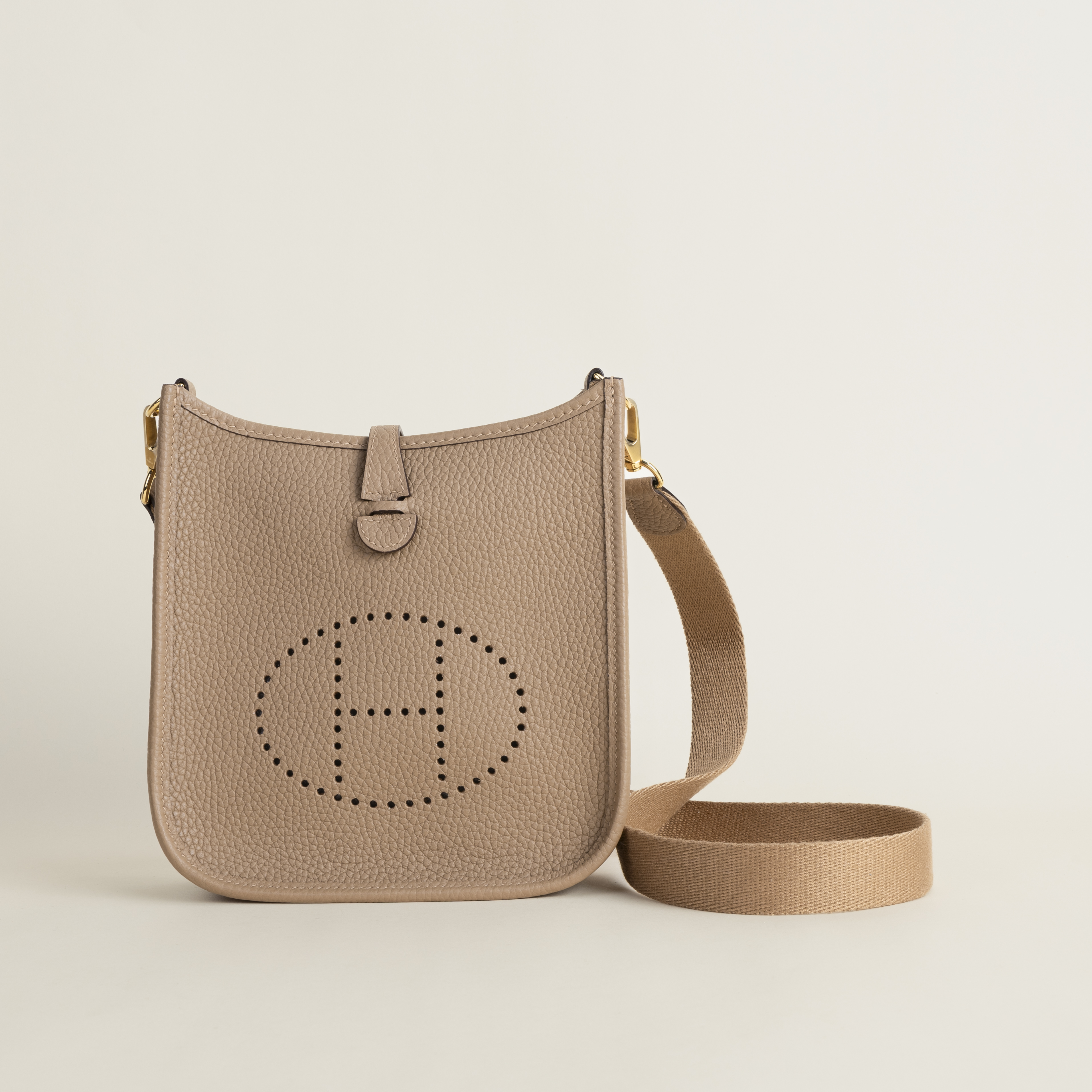 Model :Evelyne miniColor :OM ChaiMaterial :Clemence leather Hardware :GoldMeasurements :(w)18x(H)16x(D)5.5cm Accompanied:shoulderstrap,Padlock,Key,Raincover,Box,Cotton bag