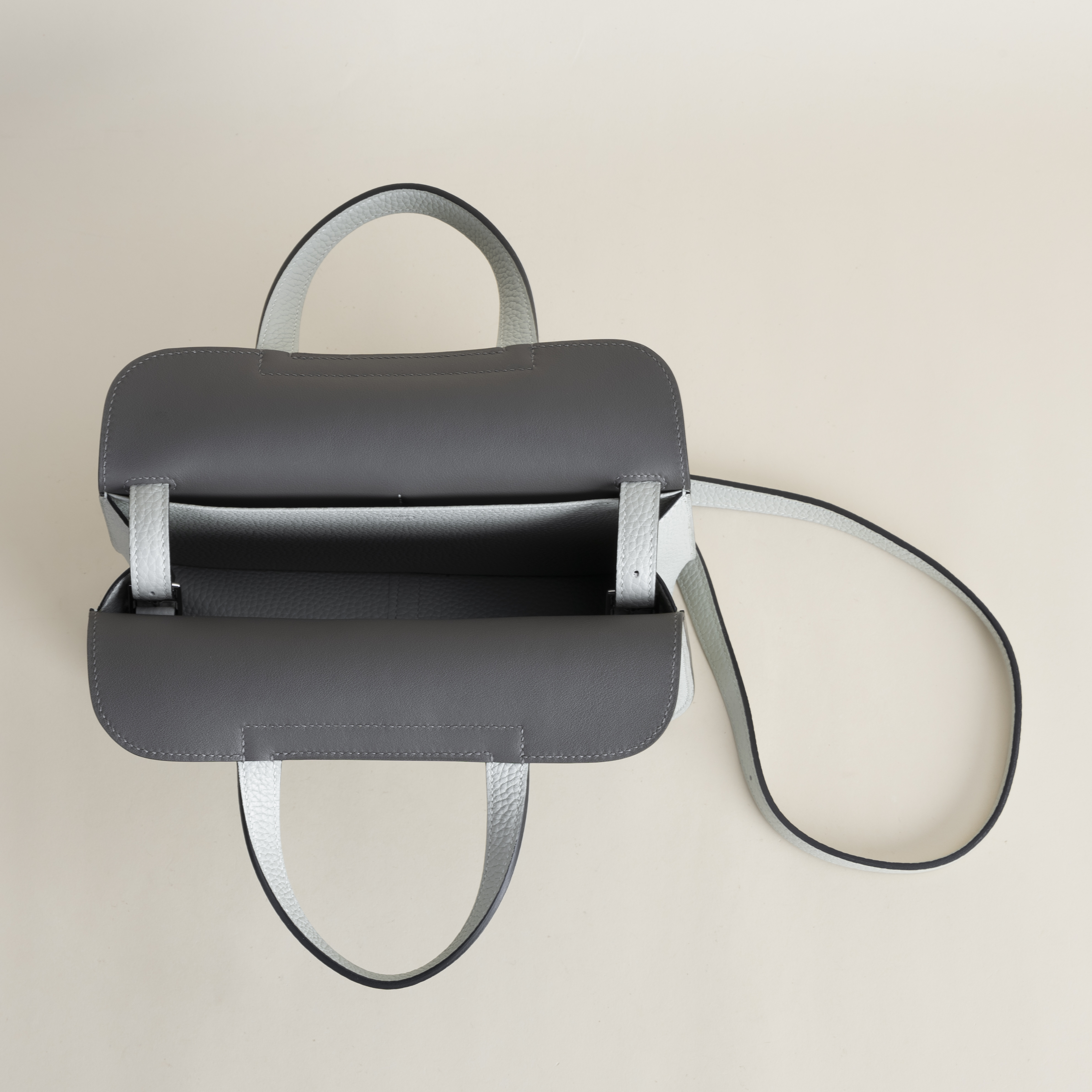 Model :Halzan 25CMColor :0V Gris ciment/0L Gris meyerMaterial :Clemence leatherHardware :silver Measurements :(w)25x(H)17x(D)8cmAccompanied:Box, Cotton bag, MirrorPlease contact me on WhatsApp if you have any questions