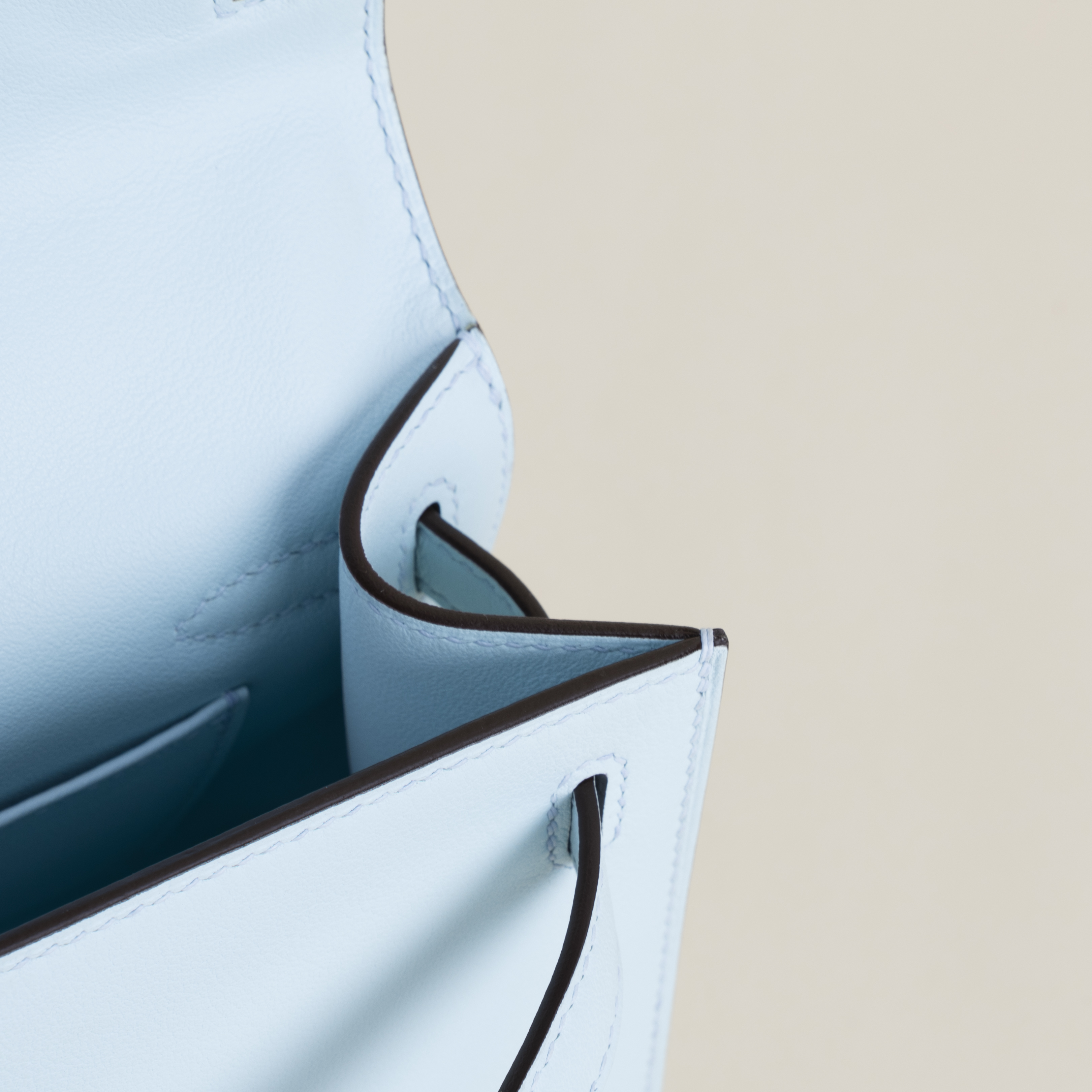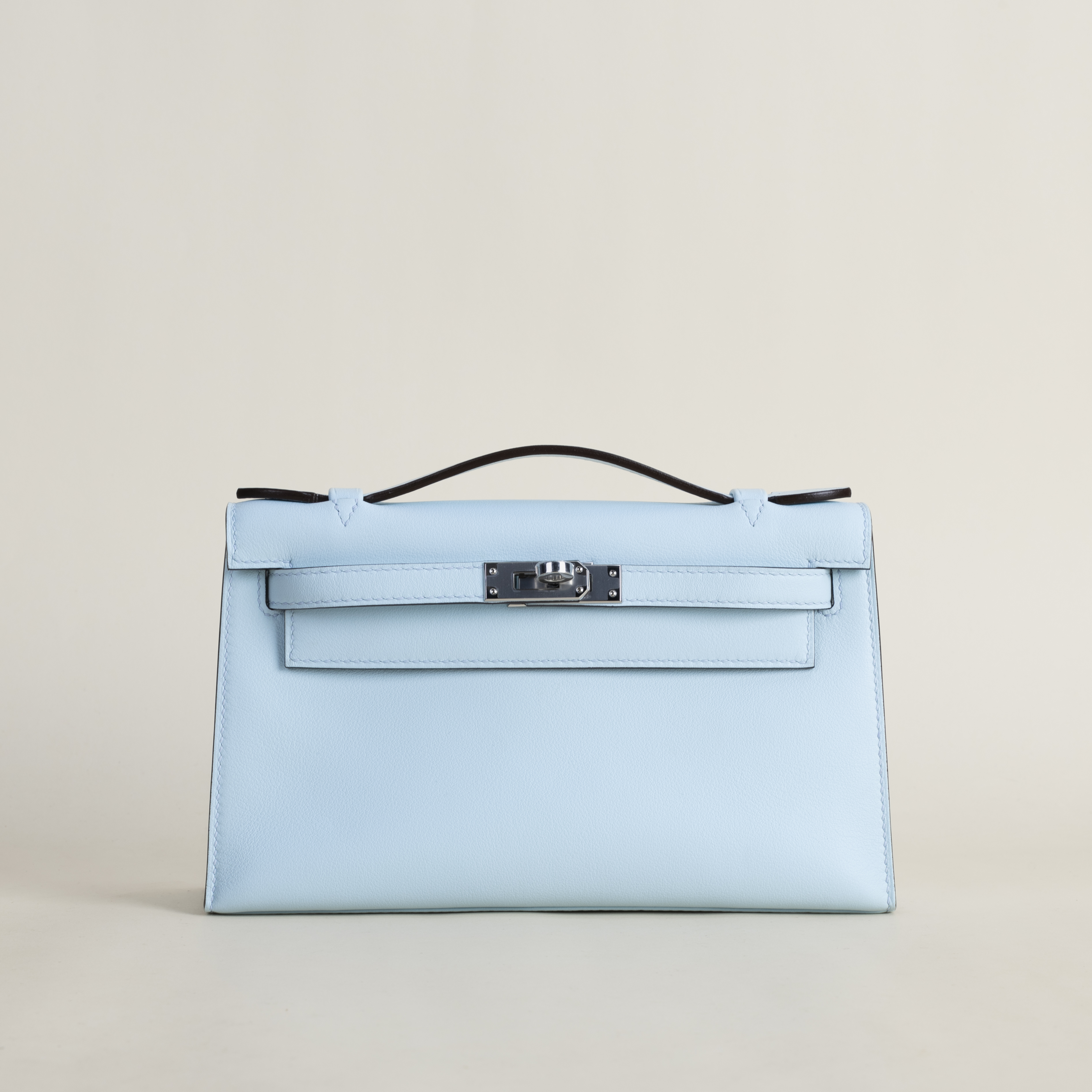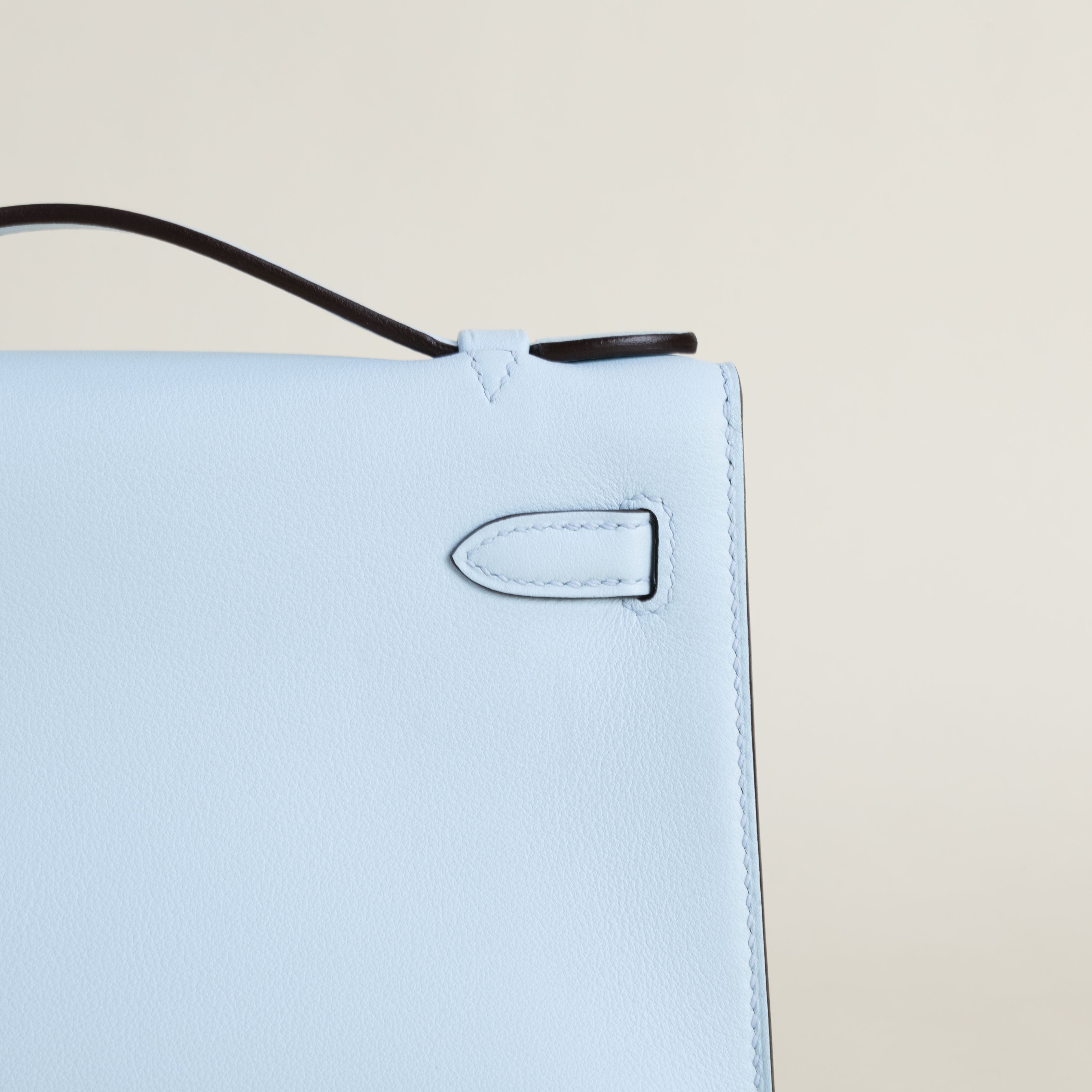 Model : Kelly pochette Color :T0 Bleu Brume Material : swift leather Hardware :silver