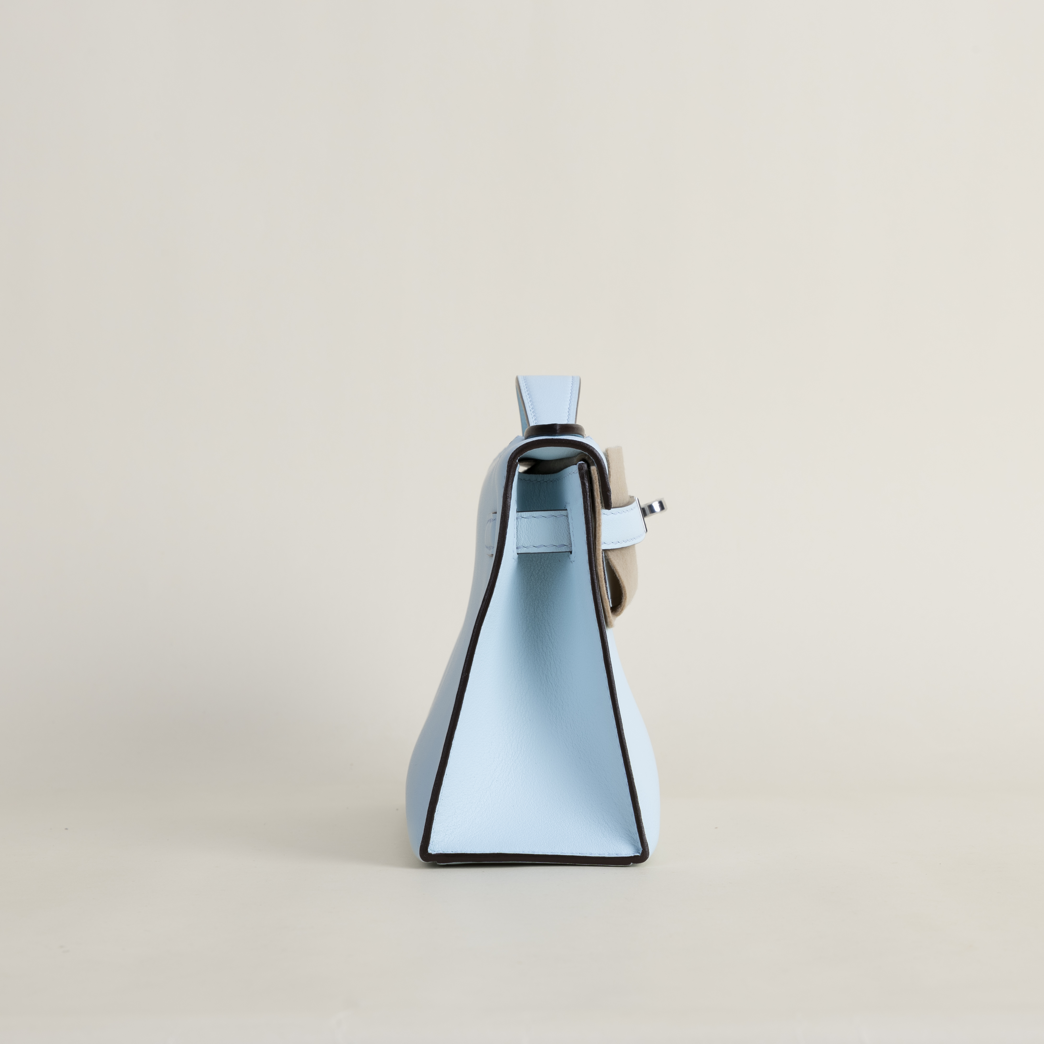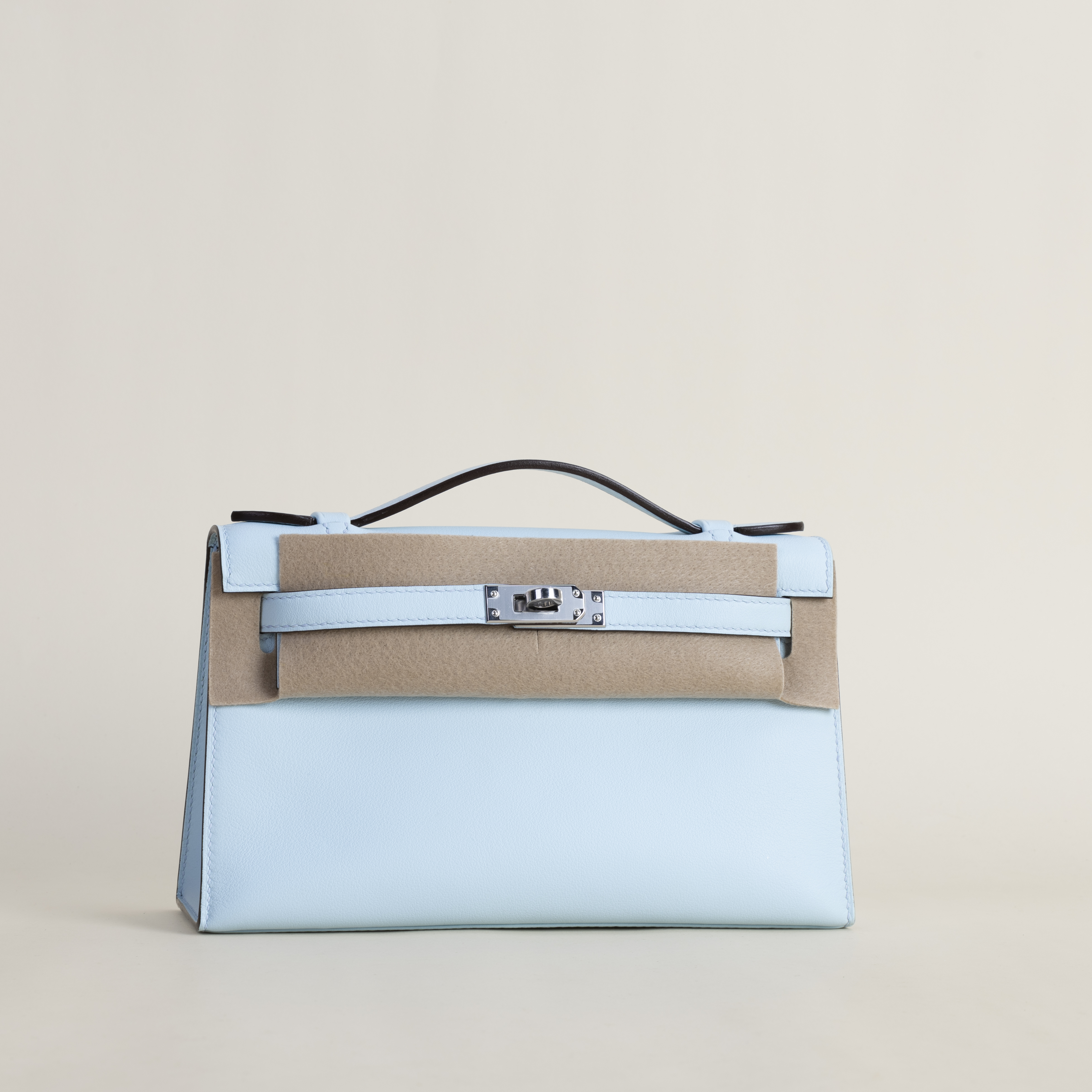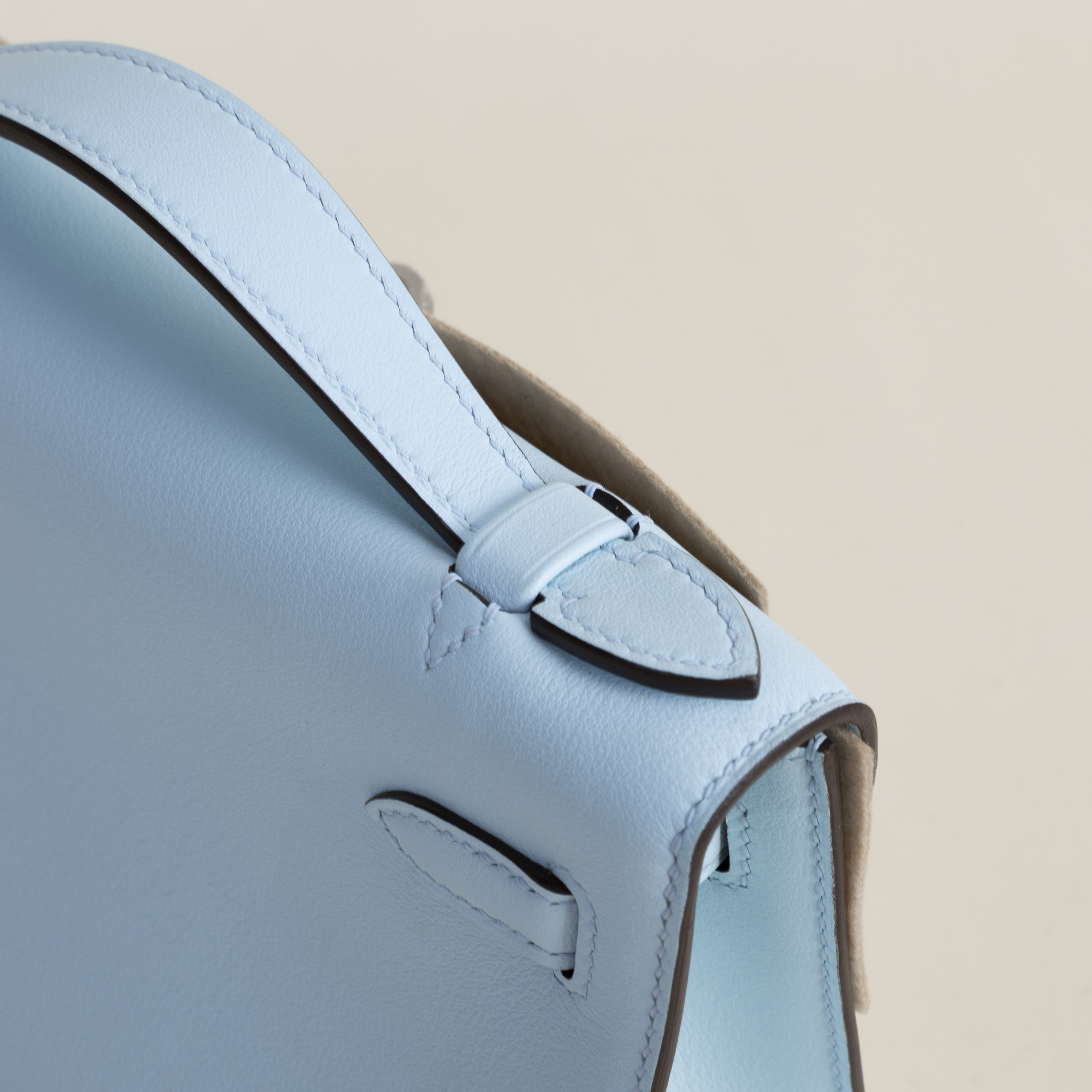 Model : Kelly pochette Color :T0 Bleu Brume Material : swift leather Hardware :silver
