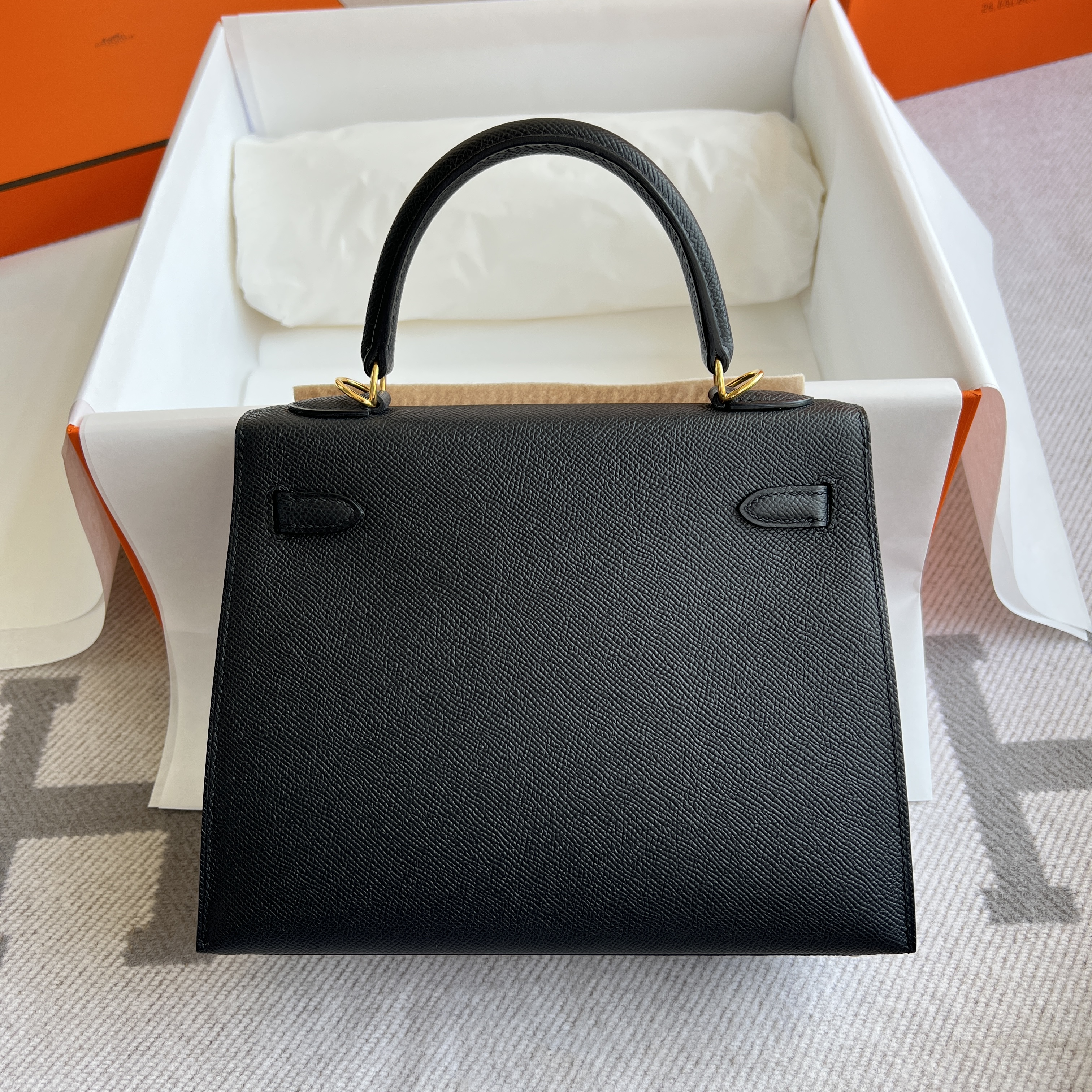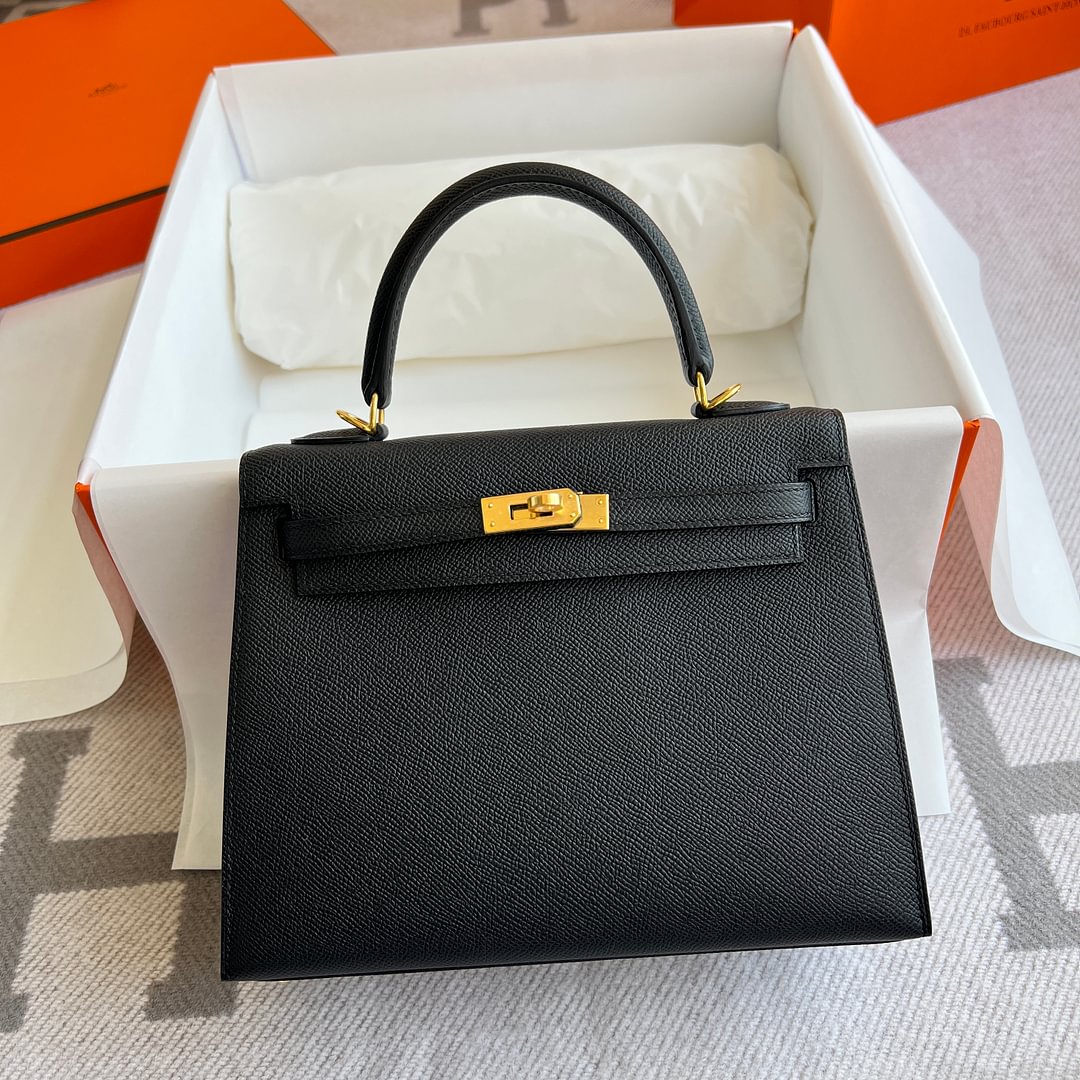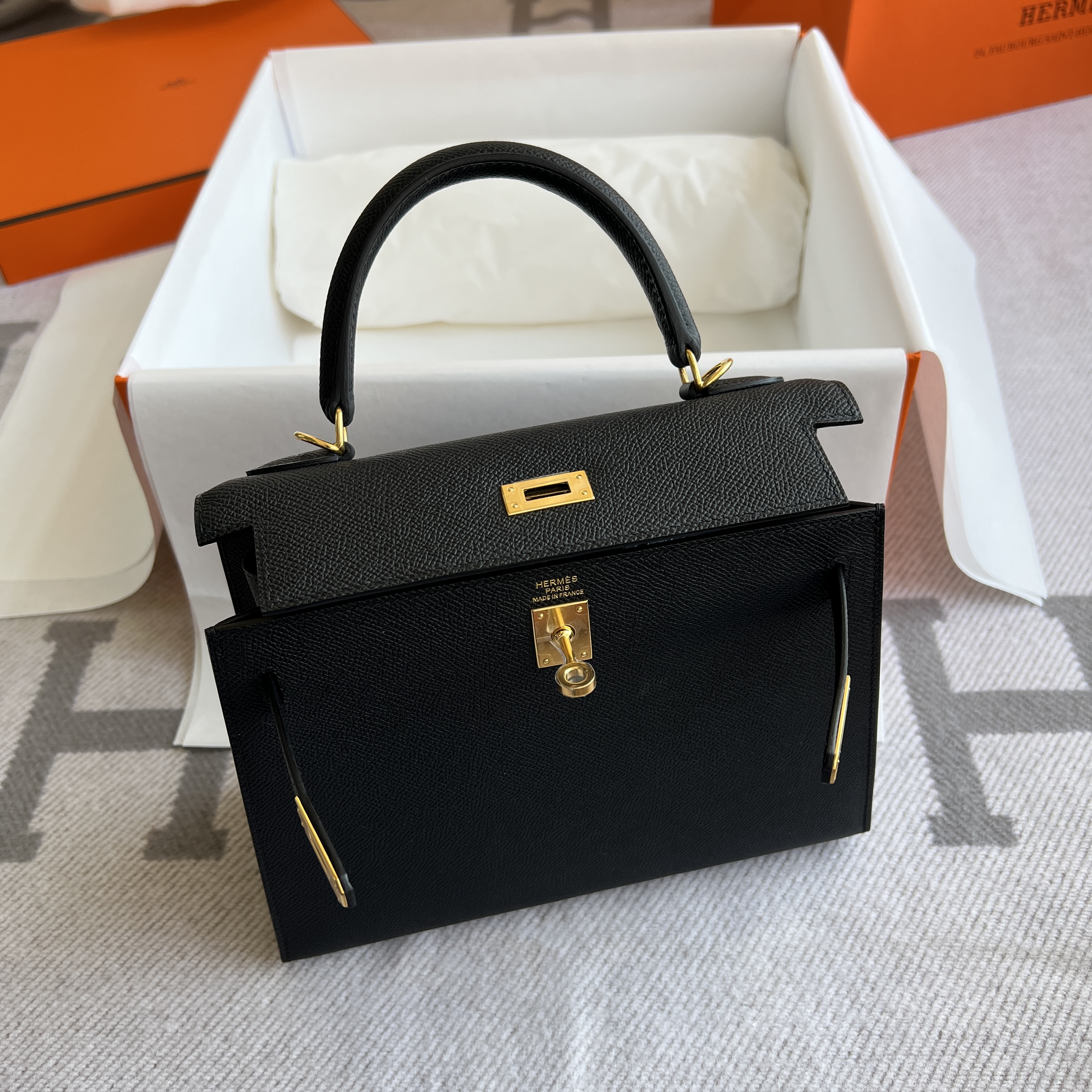 Model :Kelly25 Color :89 Noir Material :Epsom leather Hardware :GoldMeasurements :(w)25x(H)17x(D)10.5cm Accompanied:Shoulderstrap,Padlock,Key,Raincover,Box,Cotton bag