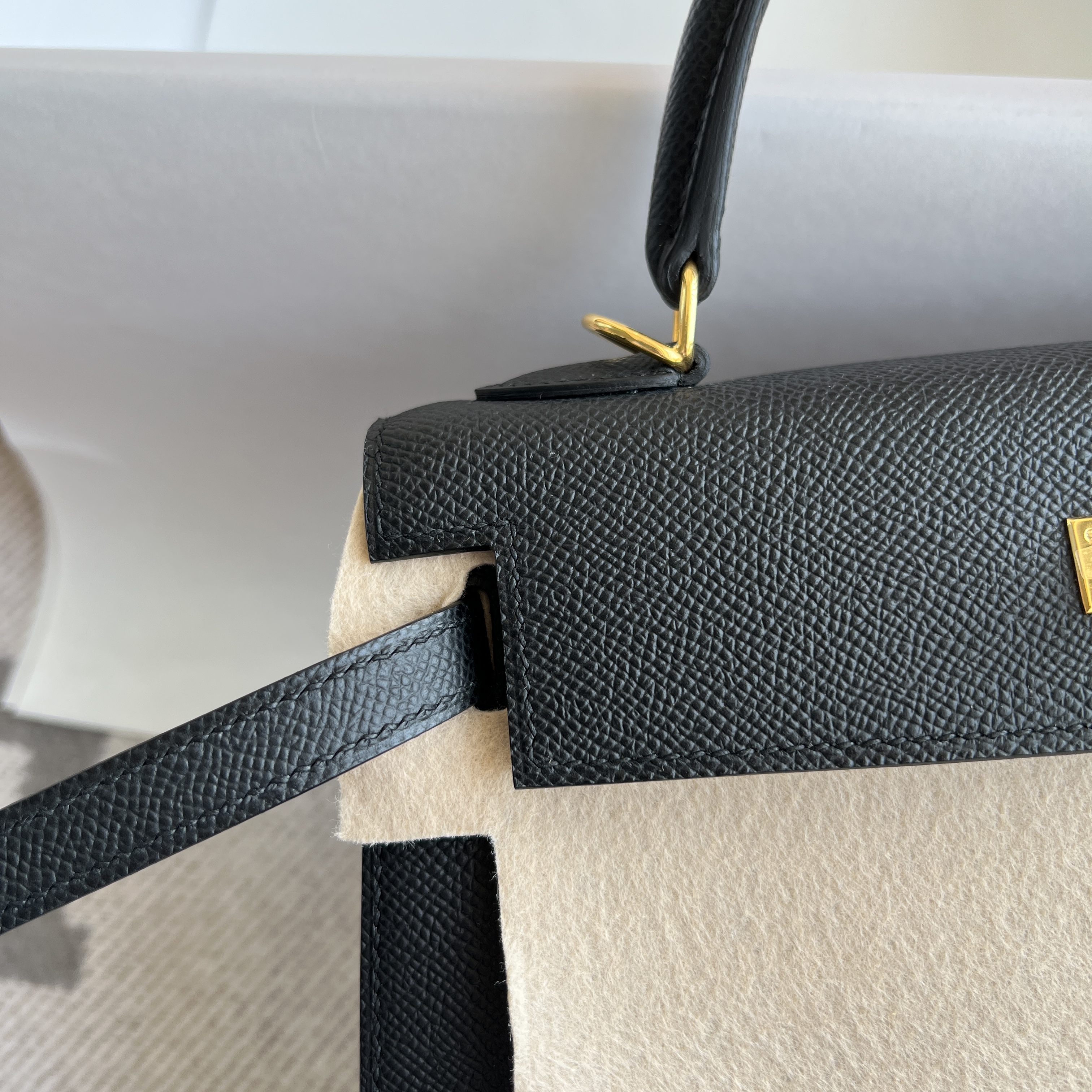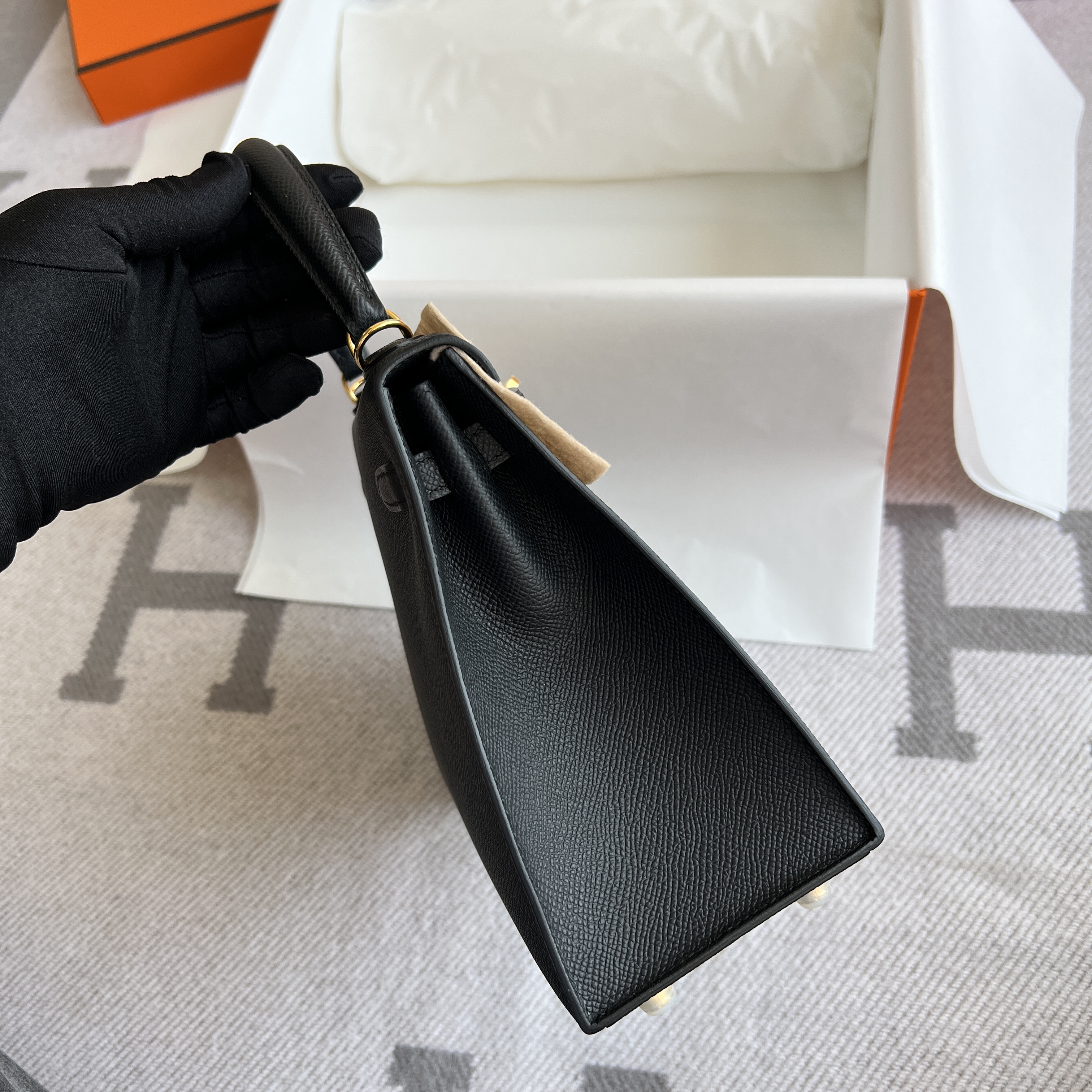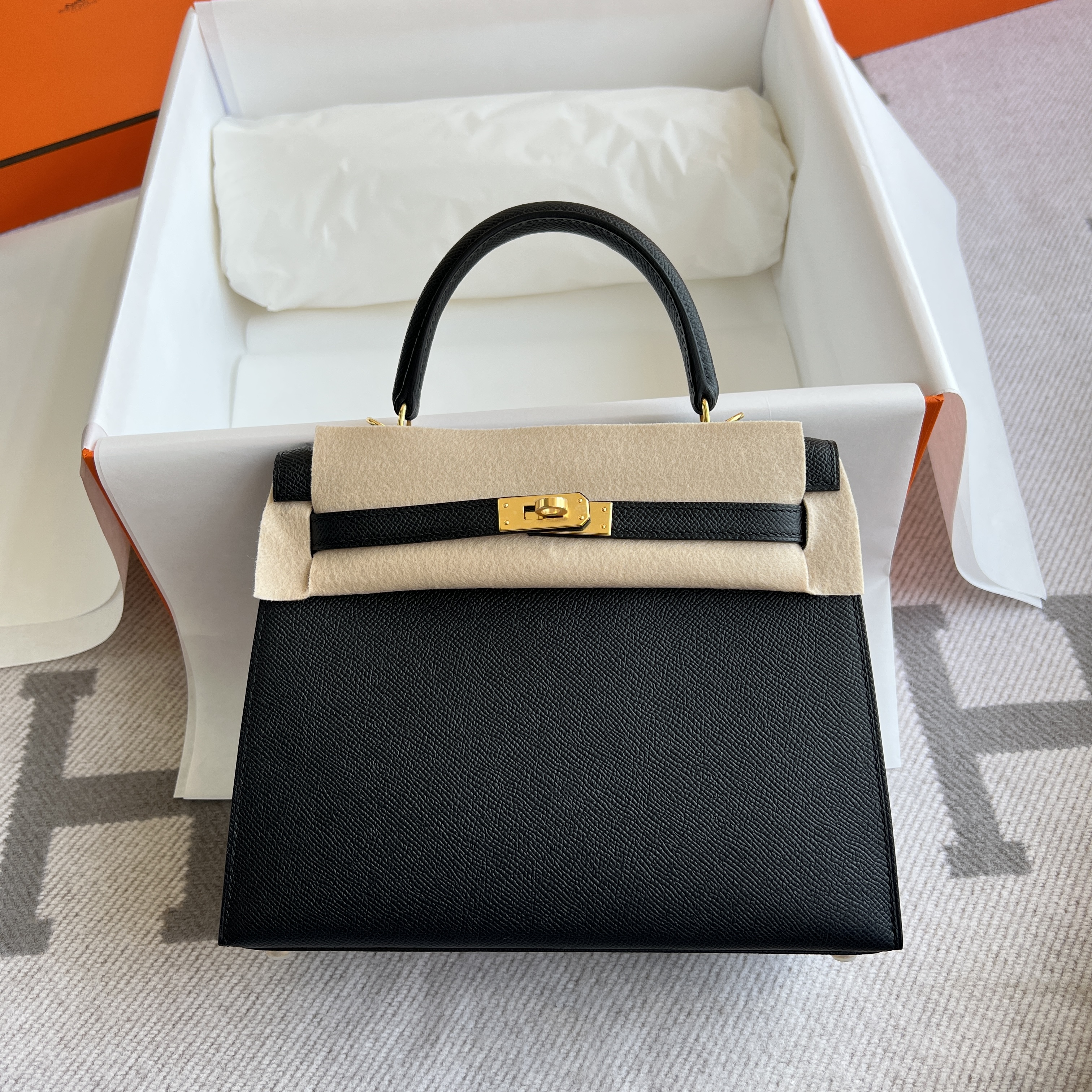 Model :Kelly25 Color :89 Noir Material :Epsom leather Hardware :GoldMeasurements :(w)25x(H)17x(D)10.5cm Accompanied:Shoulderstrap,Padlock,Key,Raincover,Box,Cotton bag